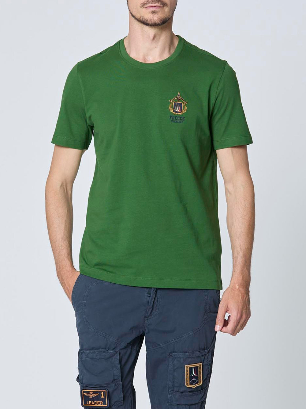 La T-shirt Uomo TS2391J592 di Aeronautica Militare, in tonalità Forest Green - Verde, incarna un equilibrio perfetto tra semplicità e stile. Realizzata al 100% in tessuto di cotone, presenta un prezioso ricamo dorato ispirato alle Frecce Tricolori, esaltando il patrimonio e la tradizione italiana in un capo essenziale e versatile.