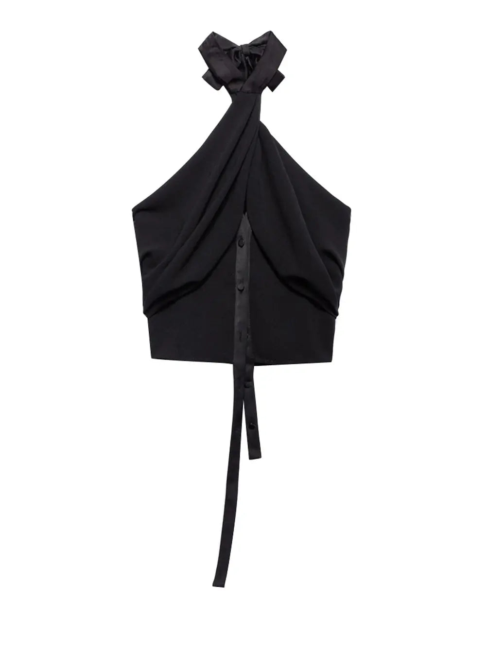 Il Top Isha di Aniye By è un capo versatile e affascinante che cattura l'attenzione con la sua sofisticata scollatura halter e il drappeggio incrociato che valorizza la figura. La chiusura con bottoni e nastri aggiunge un tocco femminile e dinamico, perfetto per una donna che ama esprimere la propria personalità attraverso il suo stile.