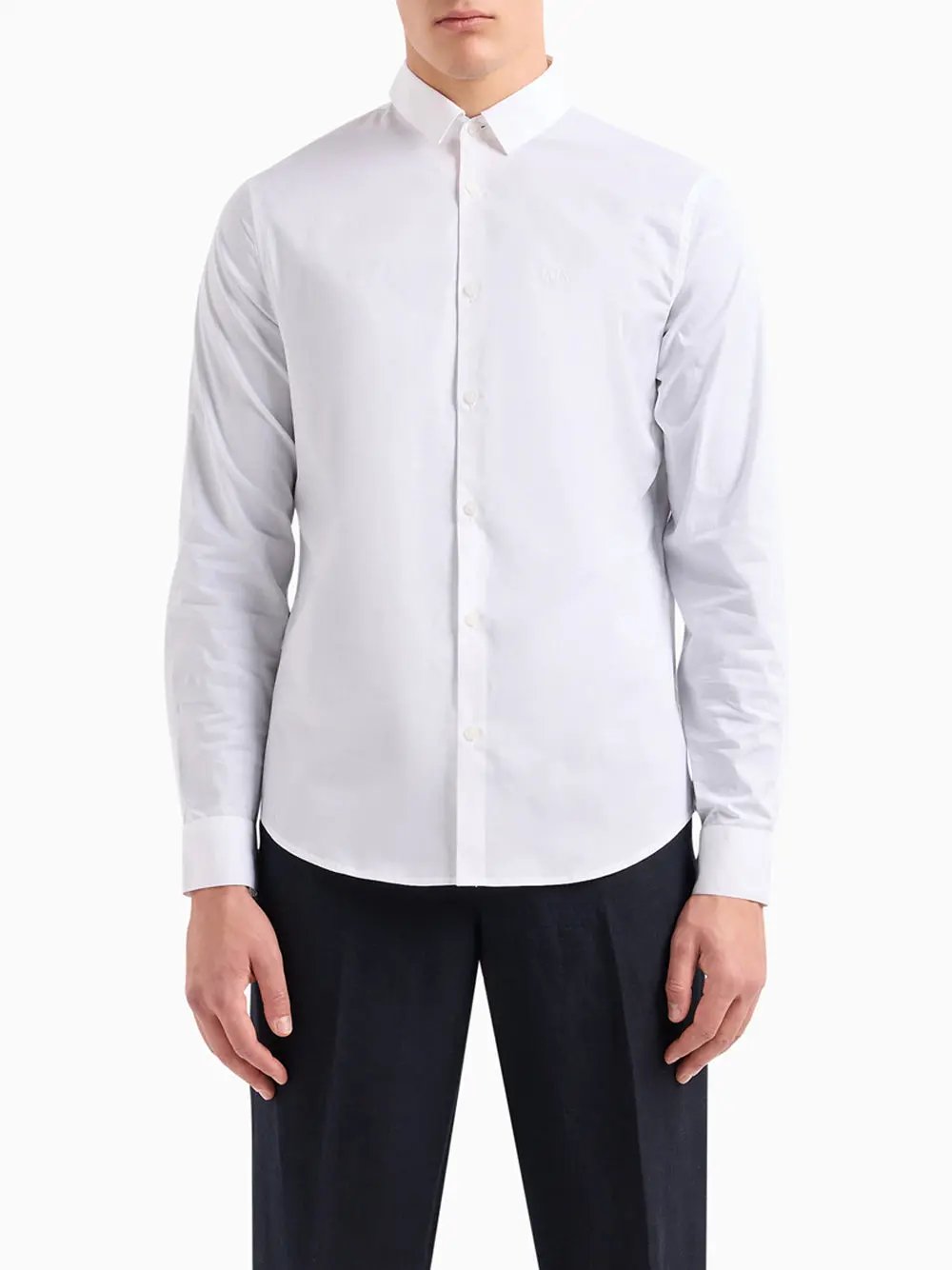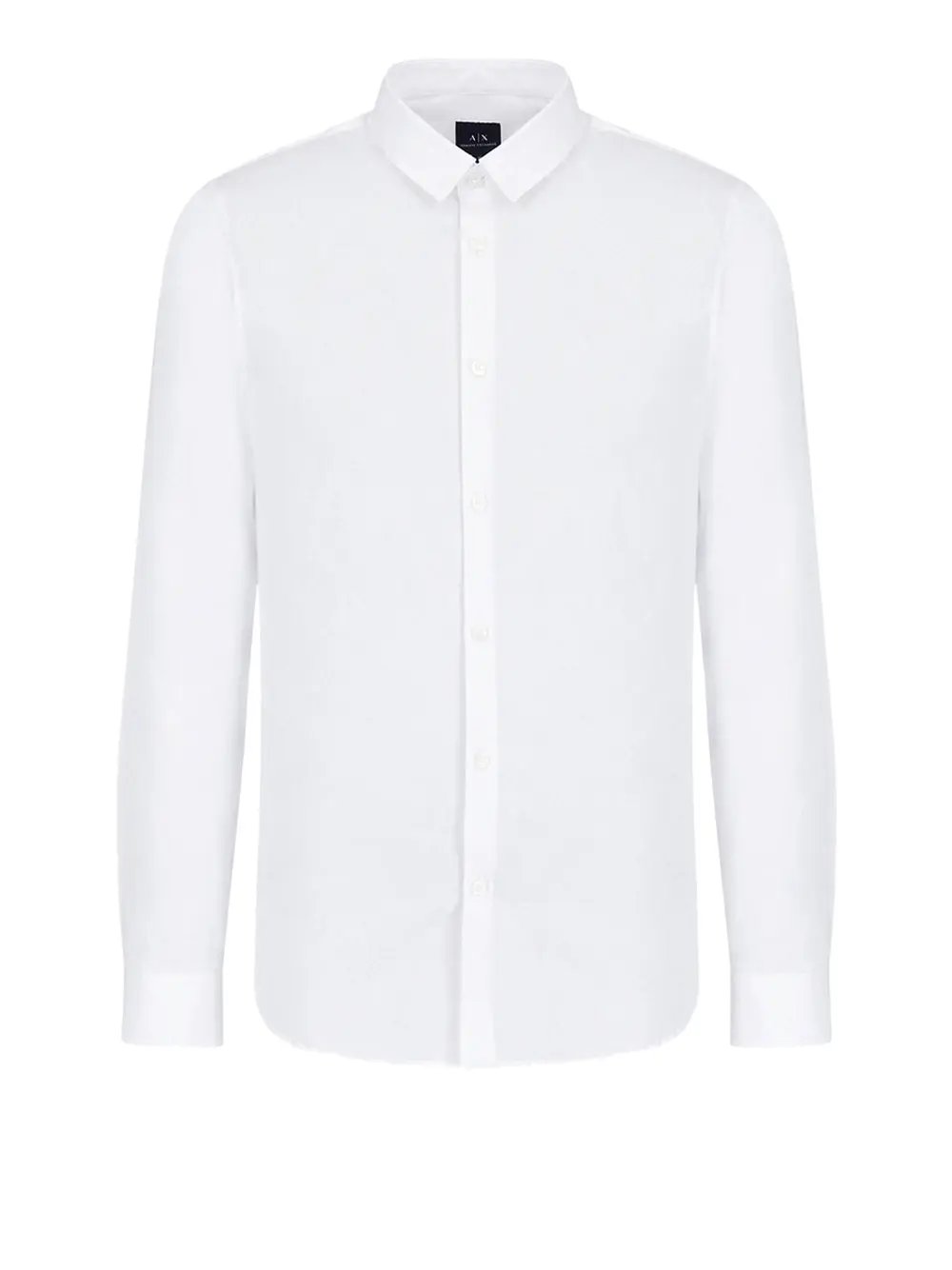 La camicia classica uomo Armani Exchange in bianco si distingue per il suo design essenziale, caratterizzato da un collo classico e un piccolo logo ricamato sul petto. Realizzata in popeline di cotone stretch, offre una vestibilità confortevole e moderna. Ideale per l'uomo che cerca eleganza e funzionalità in un capo senza tempo.