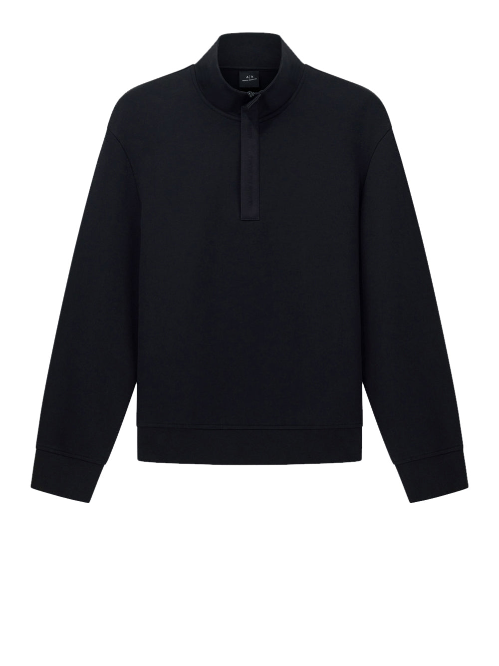 La felpa uomo di Armani Exchange, modello XM001295AF10818, è un capo di design minimalista, ma arricchito da dettagli ricercati. Realizzata in misto cotone stretch, si distingue per il collo alto con chiusura a bottoni nascosti, conferendo un aspetto contemporaneo e sofisticato, mentre le maniche lunghe e i polsini a costine garantiscono confort e vestibilità perfetta.
