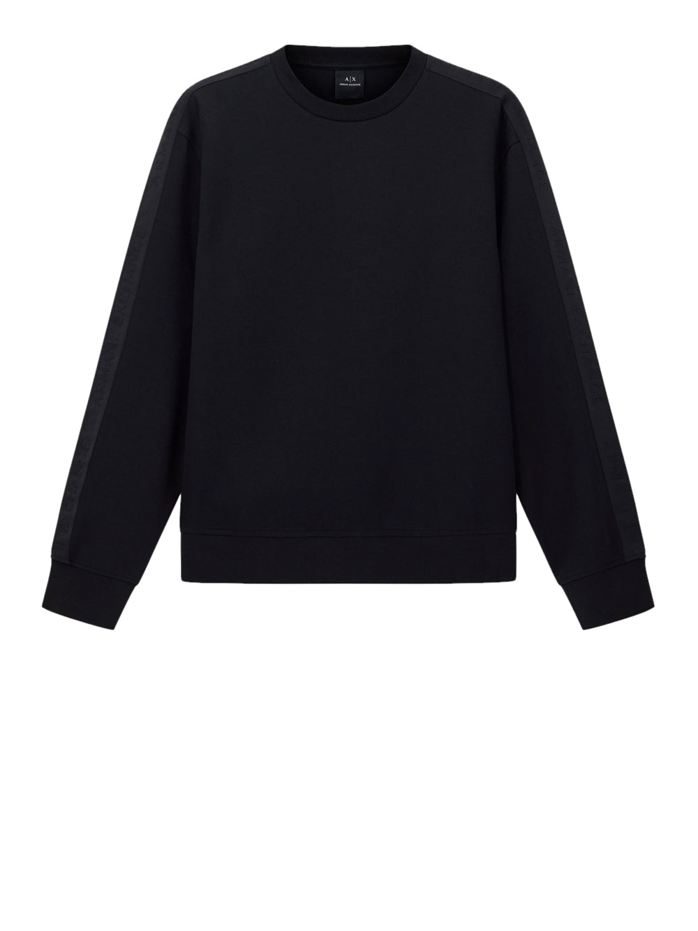 La felpa uomo Armani Exchange, codice modello XM001296AF10818, è il capo perfetto per un look casual moderno. Realizzata in un confortevole misto cotone stretch, si distingue per le bande logate A|X tono su tono applicate lungo le maniche e sulle spalle, aggiungendo un tocco graffiante e contemporaneo al suo design essenziale.