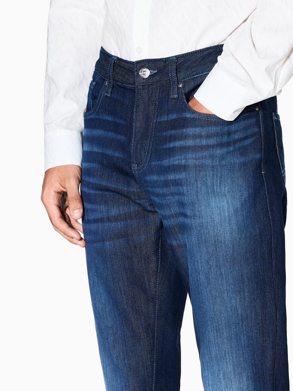 I jeans skinny da uomo di Armani Exchange offrono un equilibrio perfetto tra comfort e stile. Realizzati in denim fleece stretch, questi jeans presentano un design con cinque tasche e una chiusura con zip e bottone logato. Il fit slim enfatizza la silhouette mentre i dettagli délavé conferiscono un tocco sofisticato ma alla moda. Un must-have per il guardaroba maschile contemporaneo.