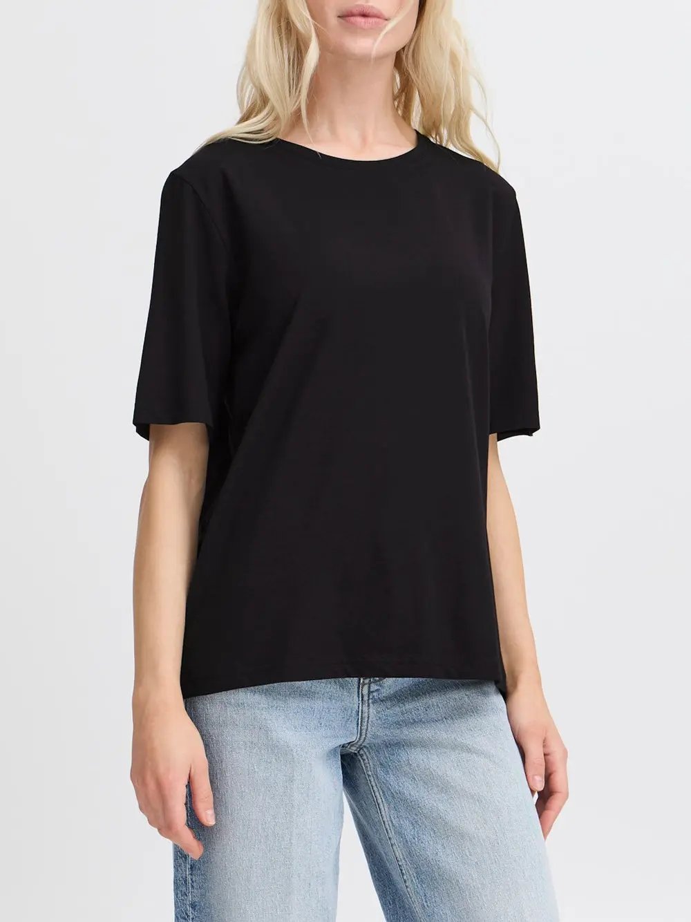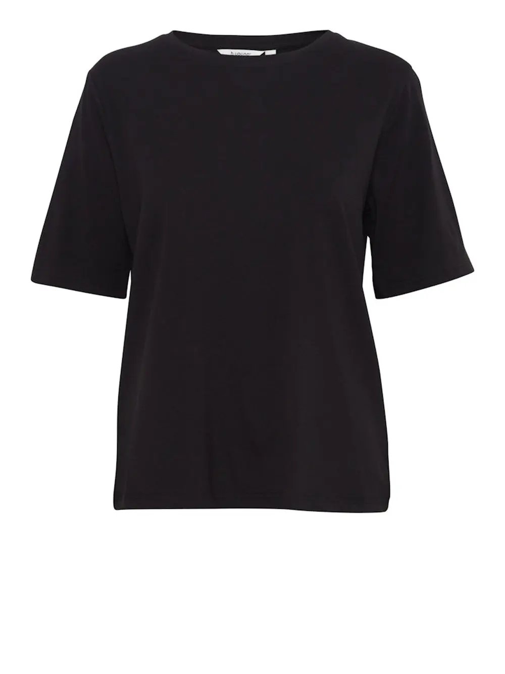 La T-shirt Bypamila di b.young è un capo essenziale per ogni guardaroba femminile. Con il suo nero elegante, questa maglietta combina il comfort del cotone con la morbidezza del modal, risultando perfetta per un look casual ma raffinato. Caratterizzata da un fit ampio e una lunghezza che arriva fin sui fianchi, è ideale per una donna dinamica ma attenta allo stile.