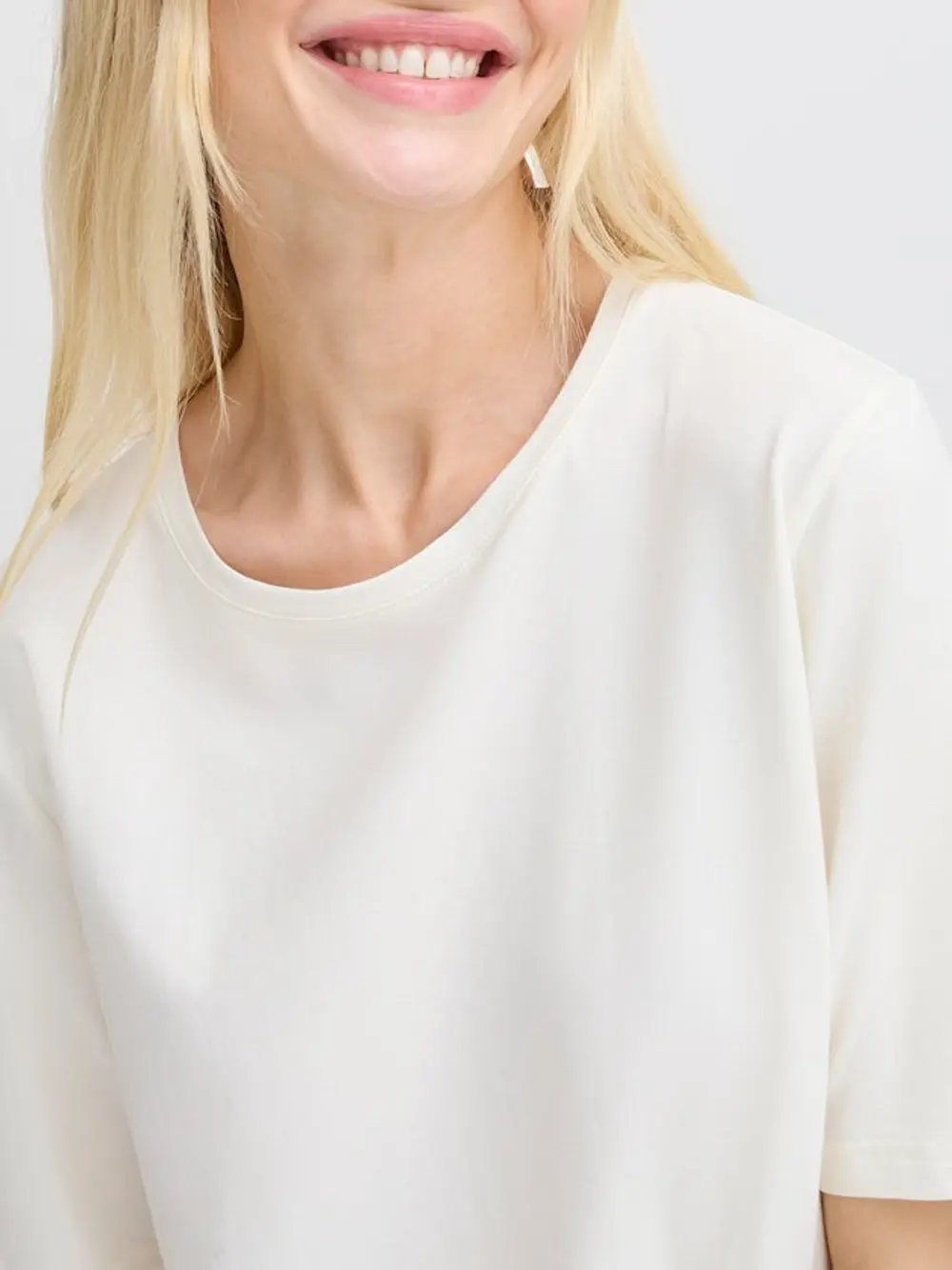 La T-shirt Bypamila Donna di b.young è un capo essenziale per il tuo guardaroba, caratterizzata da un look elegante e semplice. Realizzata in morbido tessuto di cotone, modal ed elastan, offre un comfort eccezionale e una vestibilità loose fit. Questo modello in tonalità Off White si adatta perfettamente a diversi stili e occasioni.