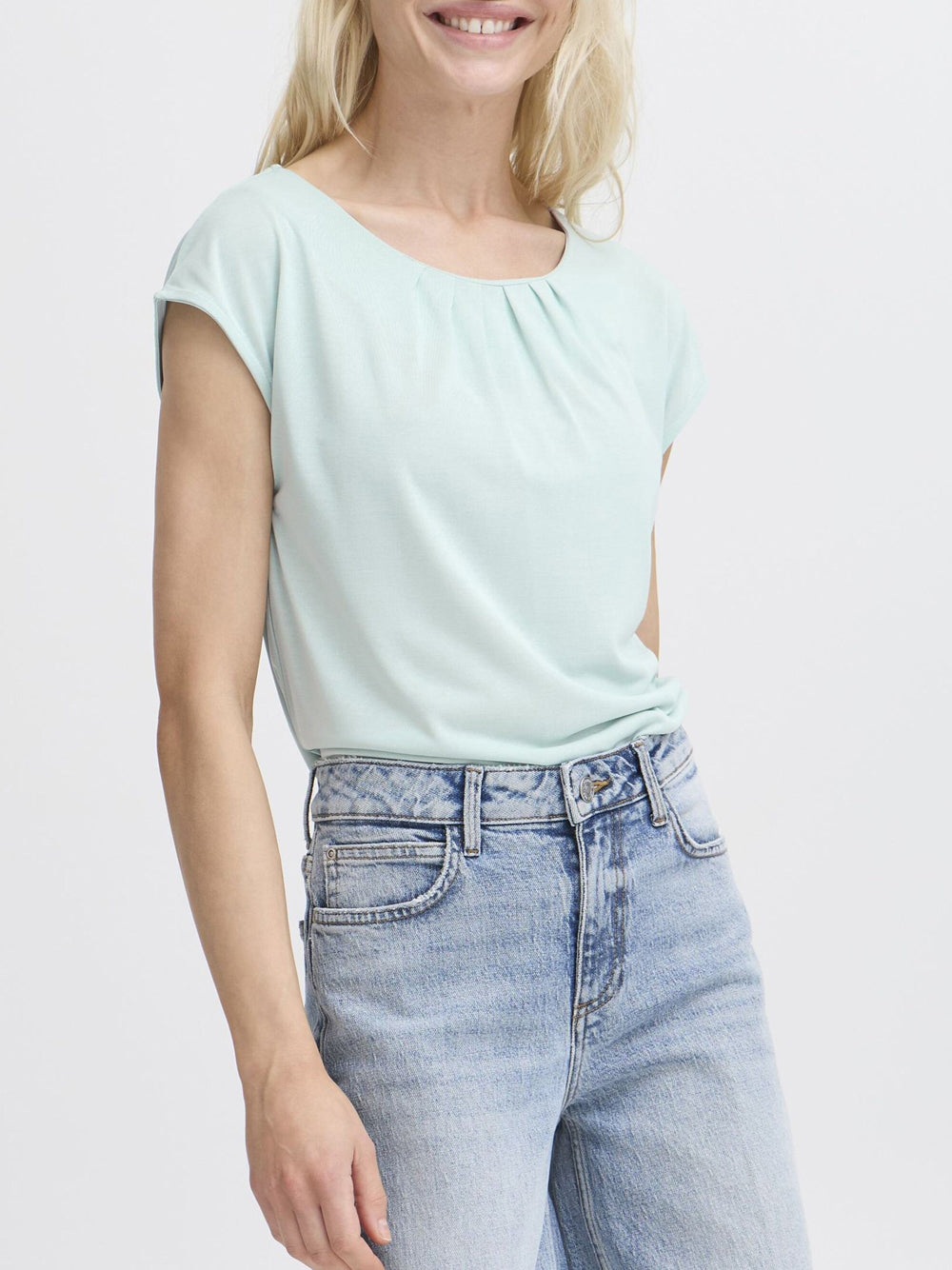 La T-shirt Donna 20816649 in Blue Haze è un capo versatile firmato B.Young. Questo modello si distingue per il suo design minimale e la tonalità celeste che aggiunge un tocco di freschezza al guardaroba di chi ama lo stile casual ma curato nei dettagli.