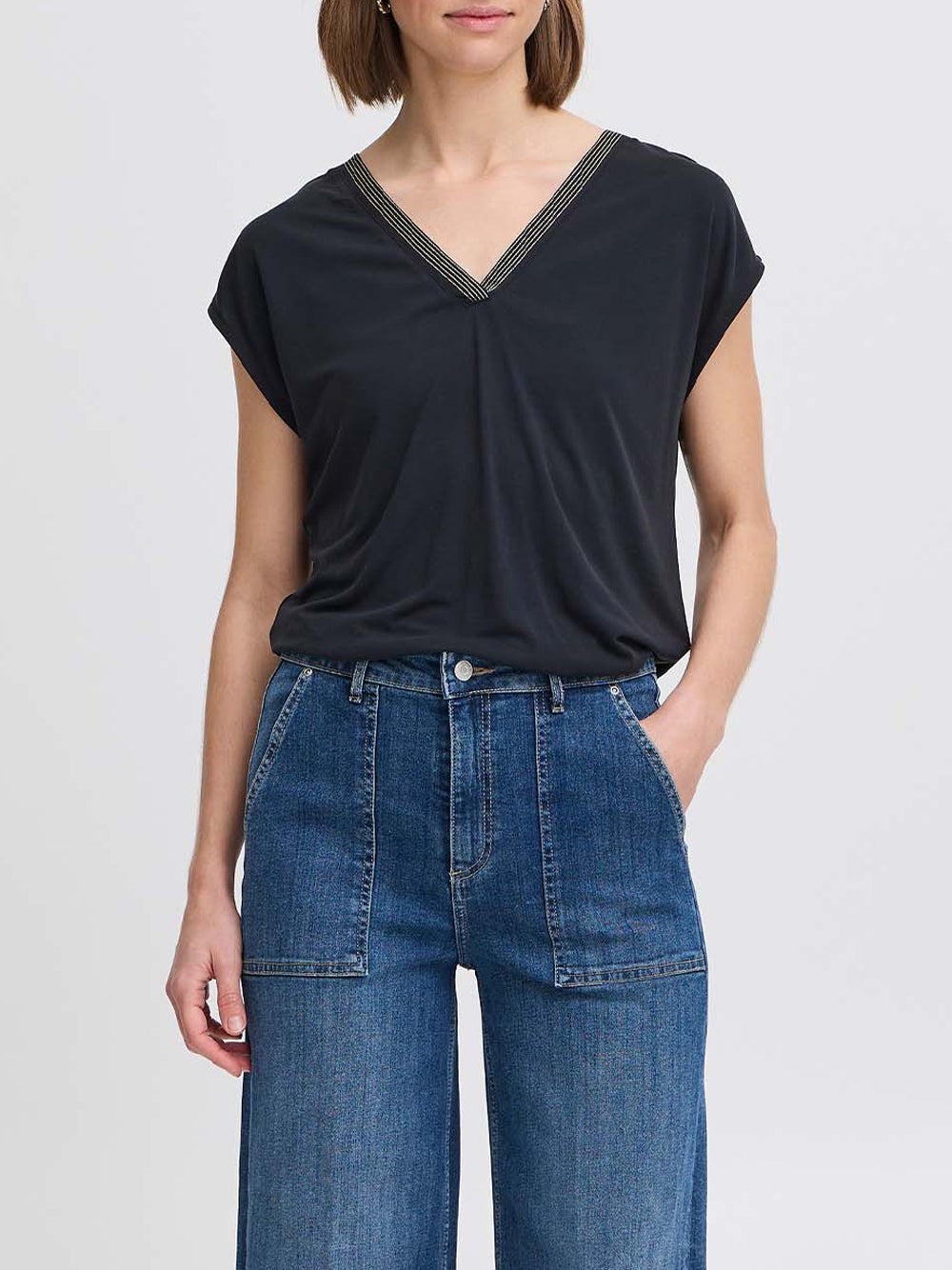 Scopri la T-shirt Donna 20816650 in Nero di b.young, un capo essenziale che unisce comfort e stile. Realizzata con un mix di modal e poliestere, questa t-shirt offre morbidezza e versatilità, perfetta per le giornate informali o per creare look più elaborati. Il design semplice la rende un must-have nell'armadio di ogni donna.