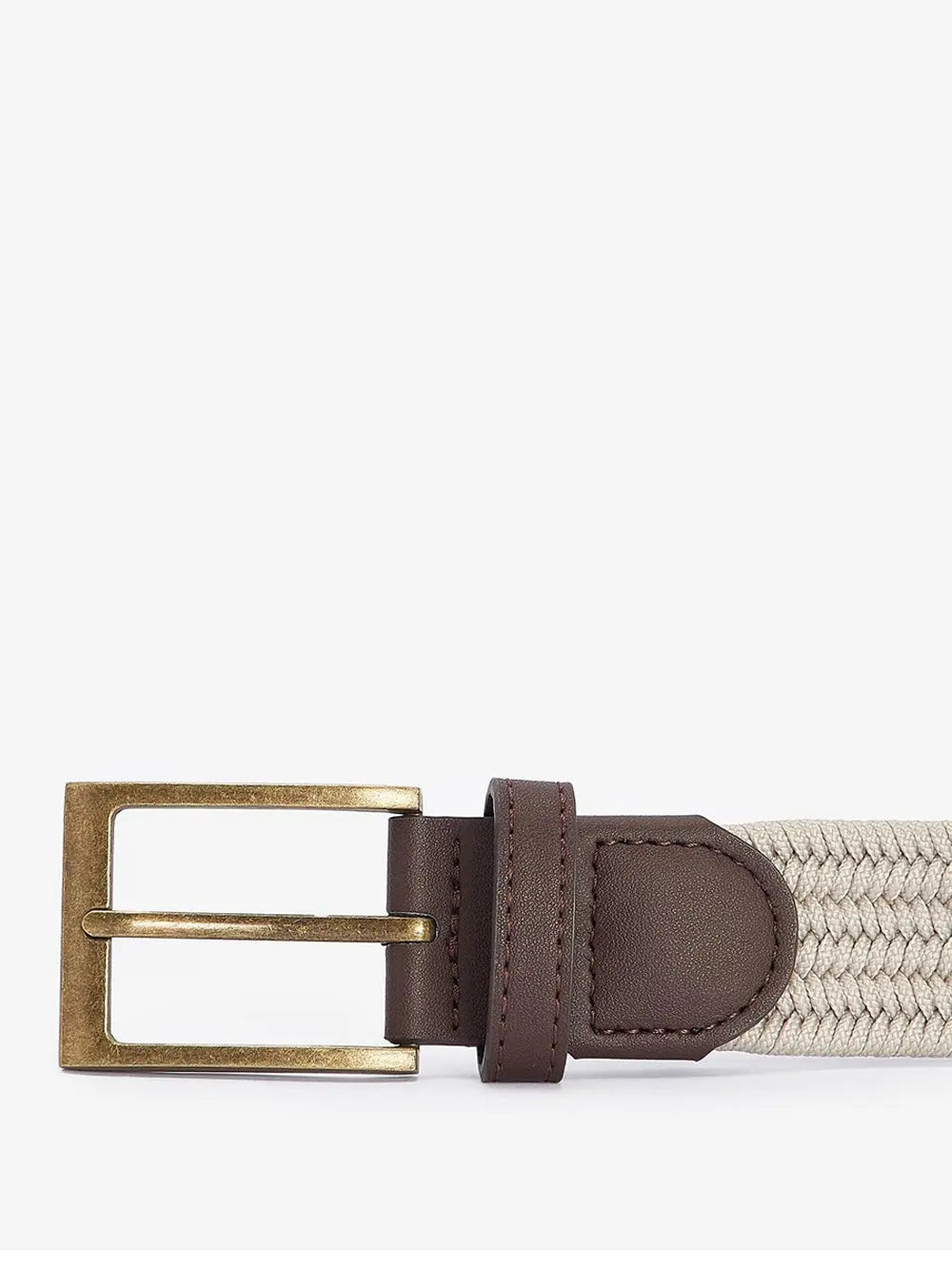 - La cintura Barbour Nevis è realizzata con un intreccio strutturato in fettuccia con fibbia effetto ottone antico e finiture in pelle