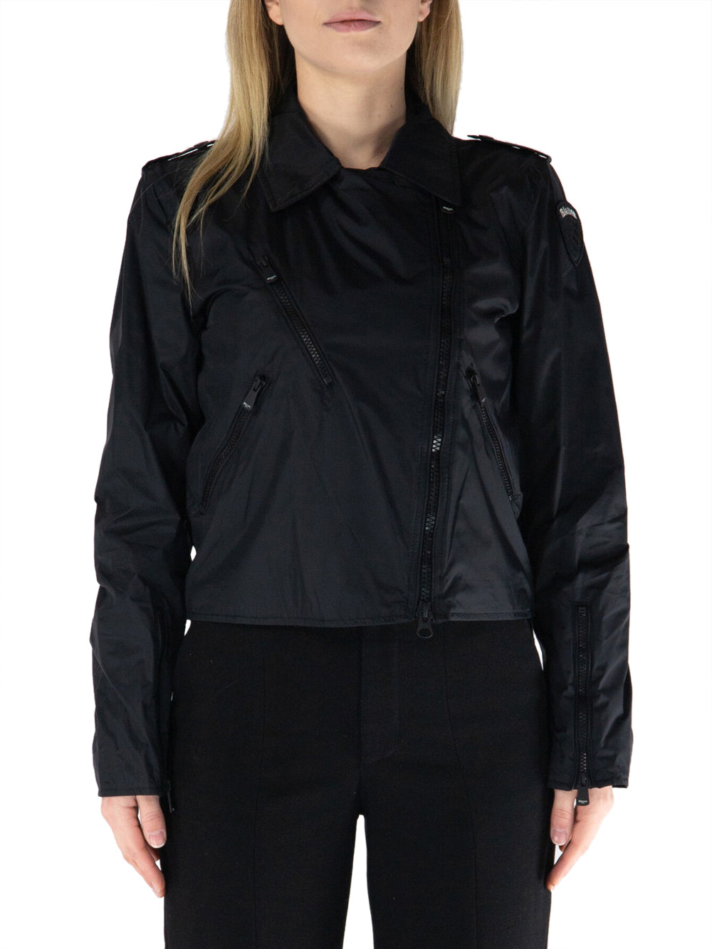 Il giubbino Zamora di Blauer è un'elegante scelta per la donna moderna che desidera aggiungere un tocco di grinta al proprio guardaroba. Realizzato in un raffinato nylon, questo giubbino in nero è caratterizzato da una chiusura asimmetrica con zip che sottolinea uno stile chic e disinvolto. Ideale per chi ama distinguersi con semplicità e carattere.
