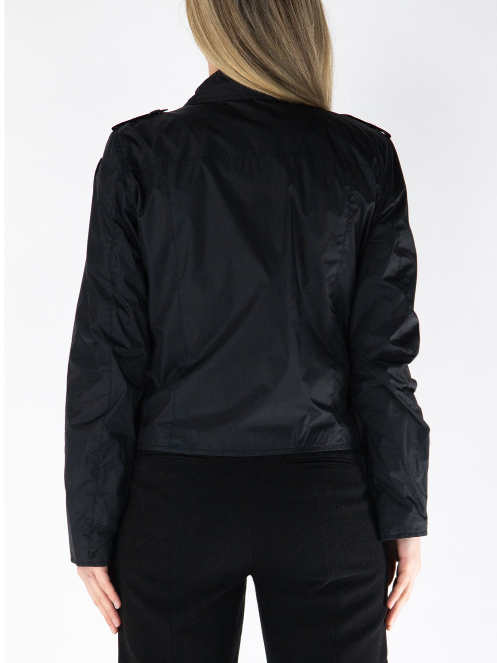 - Chiodo in nylon foderato con collo a doppio revers