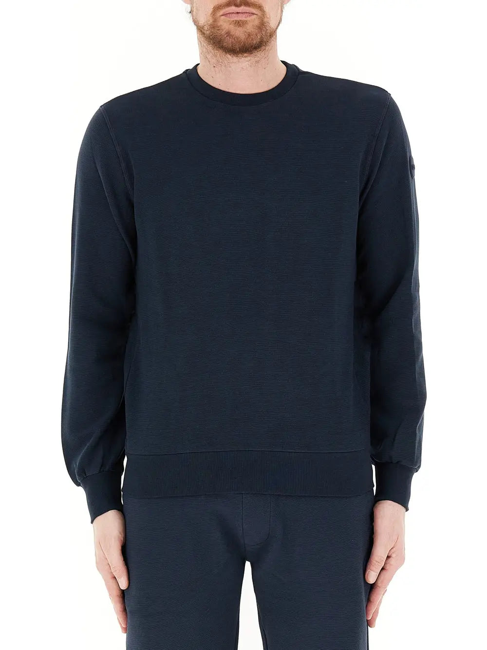 - Felpa da uomo girocollo in misto cotone stretch con effetto ottoman millerighe