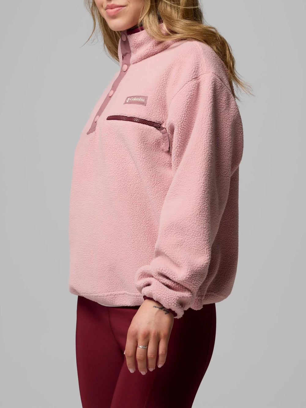 Scopri la Felpa Donna Columbia in tonalità Eraser Pink, un capo perfetto da indossare sia per le attività urbane che per le tue escursioni in natura. Questo pile cropped offre un look alla moda e ti mantiene al caldo grazie al suo materiale soffice e alla chiusura a bottoni a metà lunghezza.