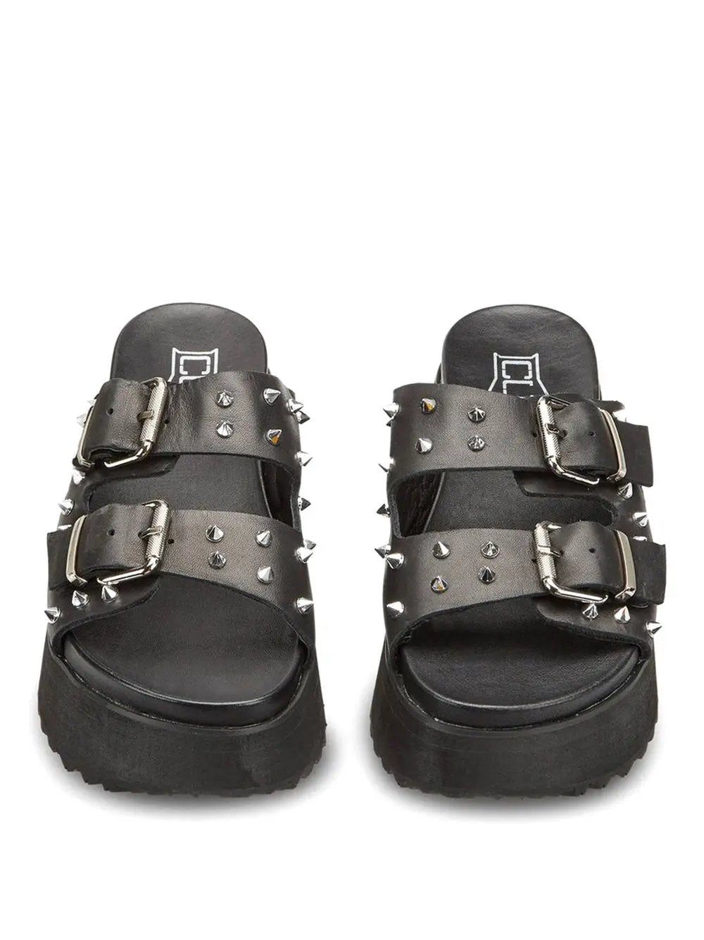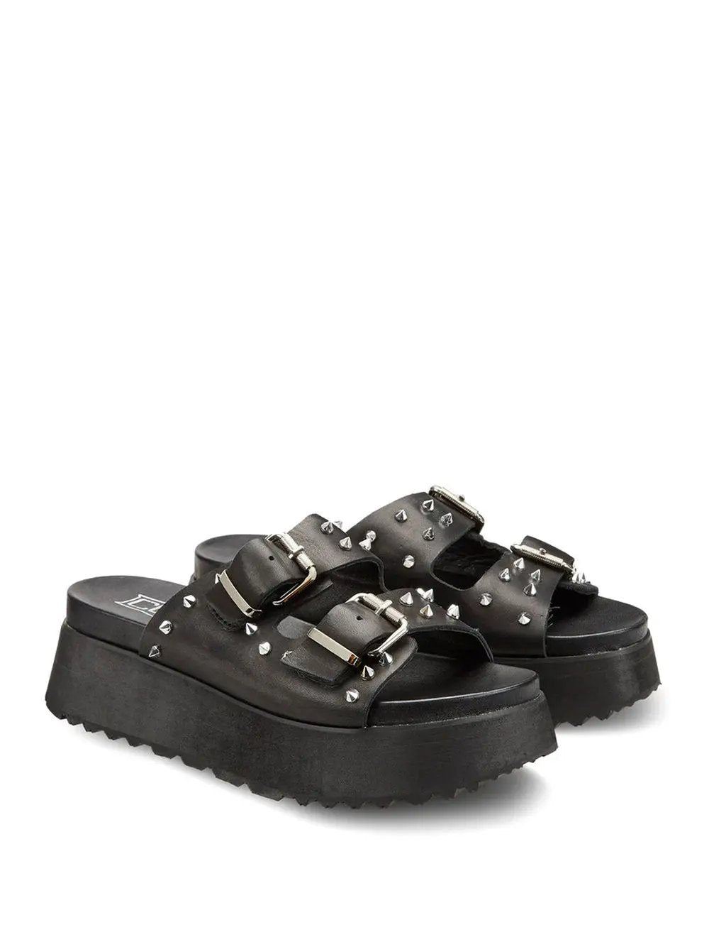 I sandali bassi Janis di Cult incarnano lo spirito rock in una forma elegante e versatile. Con la loro doppia fascia in pelle nera, fibbie in metallo e suola rinforzata, questi sandali aggiungono un tocco di glamour ad ogni outfit. L'altezza della suola di 6,5 cm assicura comfort senza sacrificare lo stile.