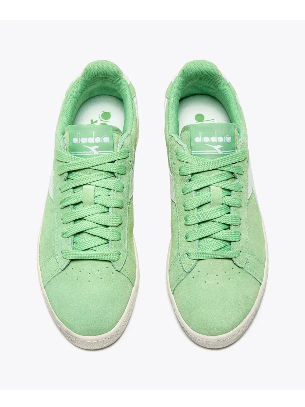 Le Sneakers Suede Waxed Unisex Diadora Game L Low sono l'essenza del design retro con un tocco moderno. Realizzate con pelle cerata, queste scarpe mescolano il classico stile delle scarpe da tennis con dettagli in suede che aggiungono una dinamicità unica. La combinazione di bianco e verde pistacchio crea un'estetica fresca e contemporanea.