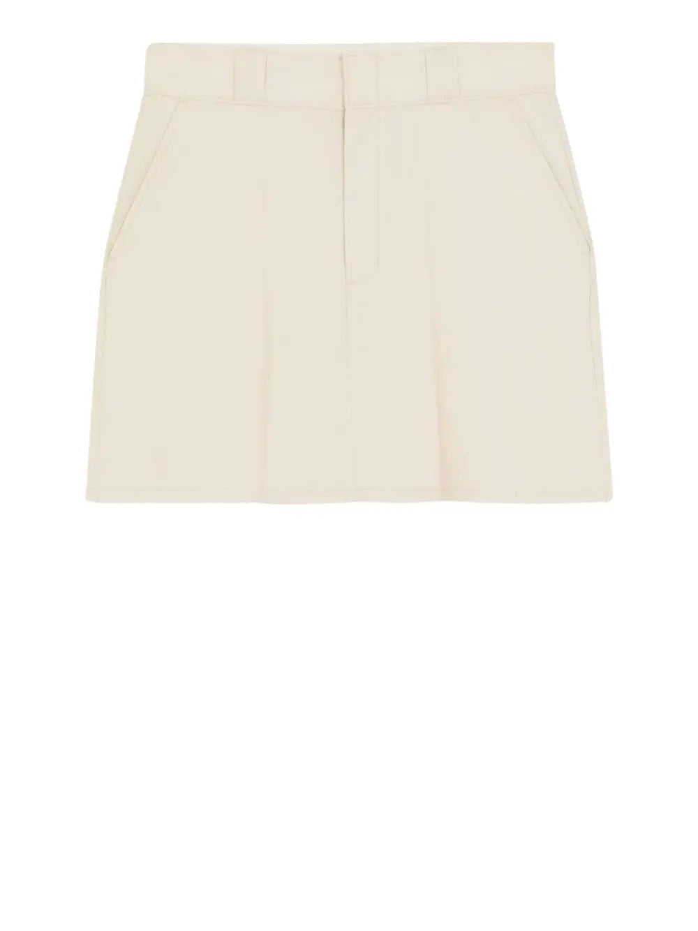 La gonna mini in avorio di Dickies unisce lo stile funzionale del workwear alla morbidezza e resistenza del twill di policotone. Questo capo è perfetto per le donne che desiderano un look versatile e dinamico. Con un design a vita alta e dettagli distintivi, questa gonna aggiunge un tocco contemporaneo al guardaroba di ogni donna.