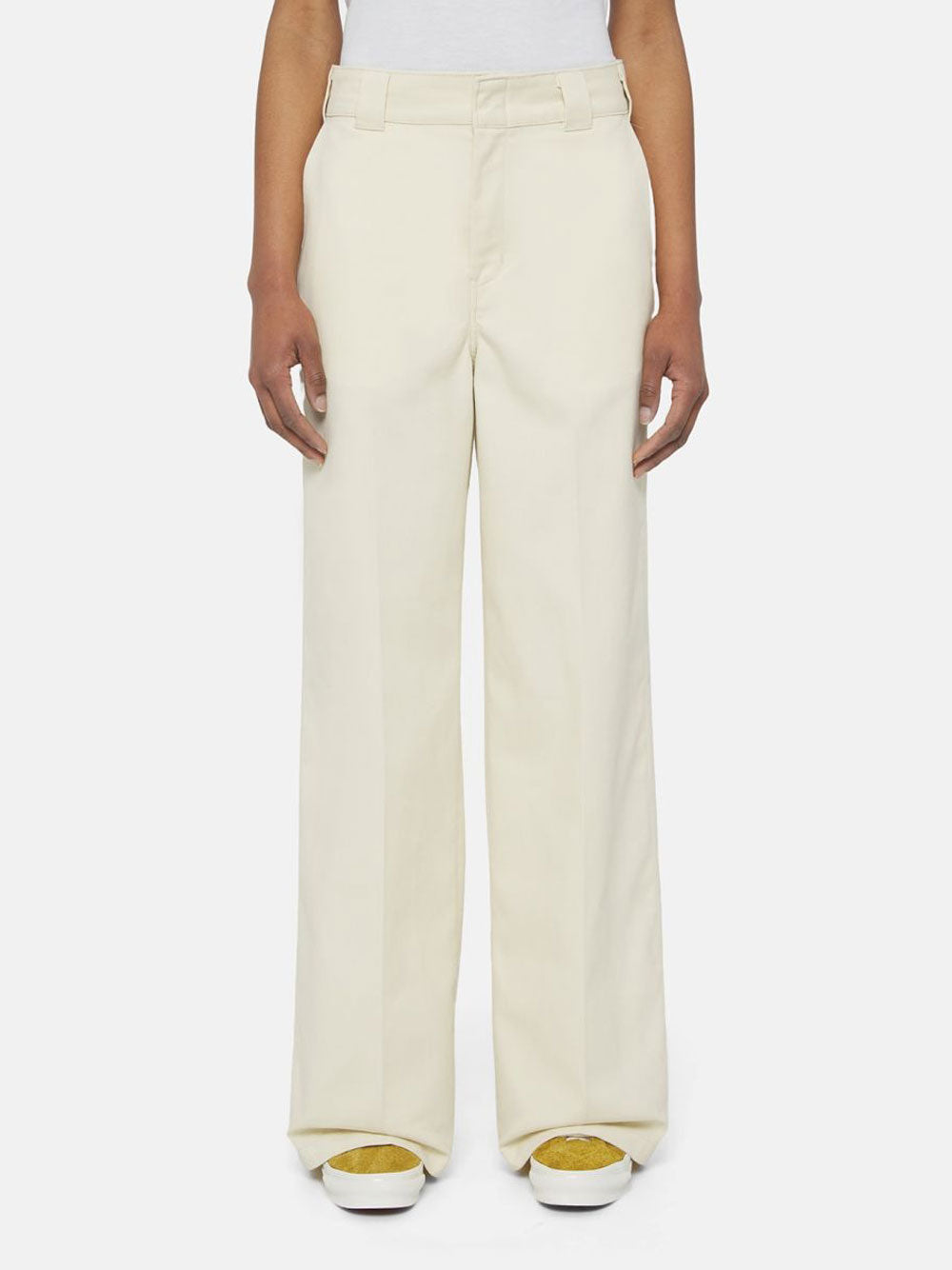 Il pantalone palazzo Dickies Work Pant da Donna in avorio unisce lo stile utility di Dickies alla praticità di tutti i giorni. Realizzato in tessuto di policotone morbido e resistente, presenta una gamba ampia e vita alta, tasche laterali e un'etichetta intessuta. Perfetto per un look casual e cool, abbinato a una camicia a maniche corte. Caratterizzato da un taglio loose fit, passanti per cintura e tasche multiuso. Composizione: 65% poliestere, 35% cotone. Un must per ogni Donna che cerca comfort e stile senza rinunciare alla qualità.