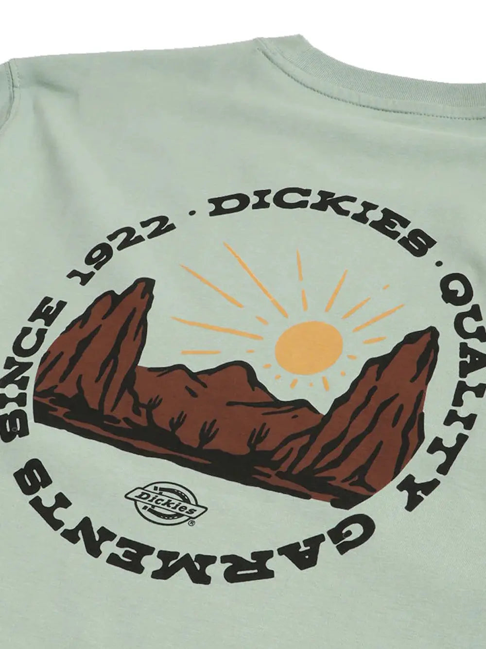 La T-shirt Uomo DK0A4Z8P Iceberg Green di Dickies rende omaggio alla tradizione workwear del marchio, con un design ispirato alle iconiche caratteristiche Western. Realizzata in morbido jersey 100% cotone, è un capo essenziale per ogni giorno, arricchito da un logo arcuato sul davanti e una grafica vintage di una catena montuosa sul retro.