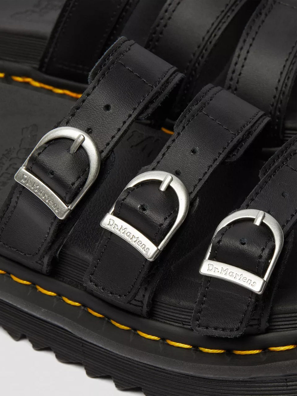 Le Blaire Slide sono sandali con 3 cinturini regolabili realizzati con il classico DNA Docs. Platform 4cm. Calzata ampia, pelle liscia rivestita in PU con finitura opaca. Dr. Martens. Per donne alla ricerca di stile e comfort.