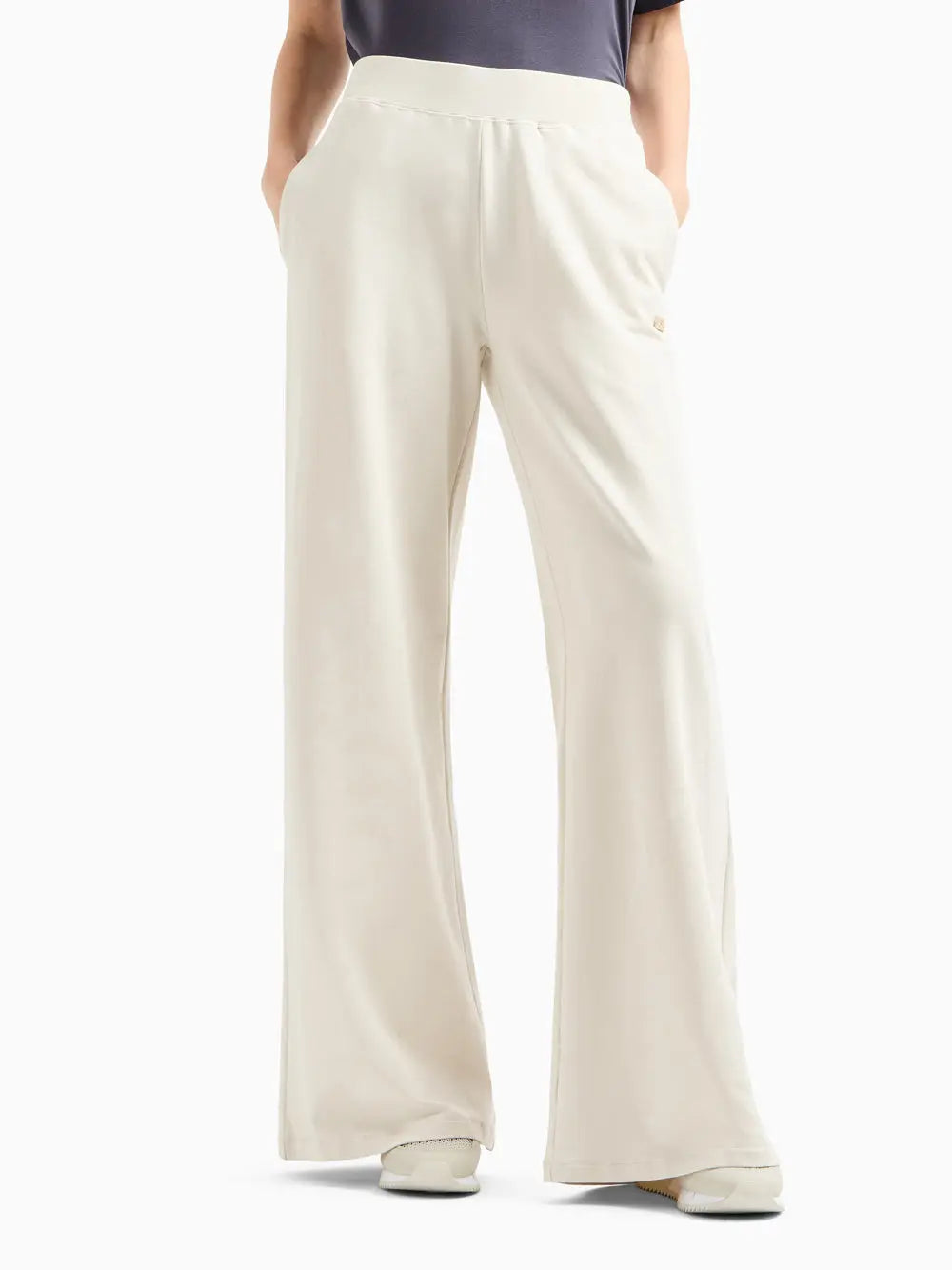 Il pantalone tuta da donna EA7 in tonalità Silver Birch - Avorio unisce comfort e stile. Realizzati in morbido cotone elasticizzato, questi pantaloni offrono una vestibilità rilassata e un orlo ampio. Il logo EA7 in metallo sulla gamba sinistra aggiunge un tocco di eleganza sportiva, perfetto per il tuo guardaroba casual.