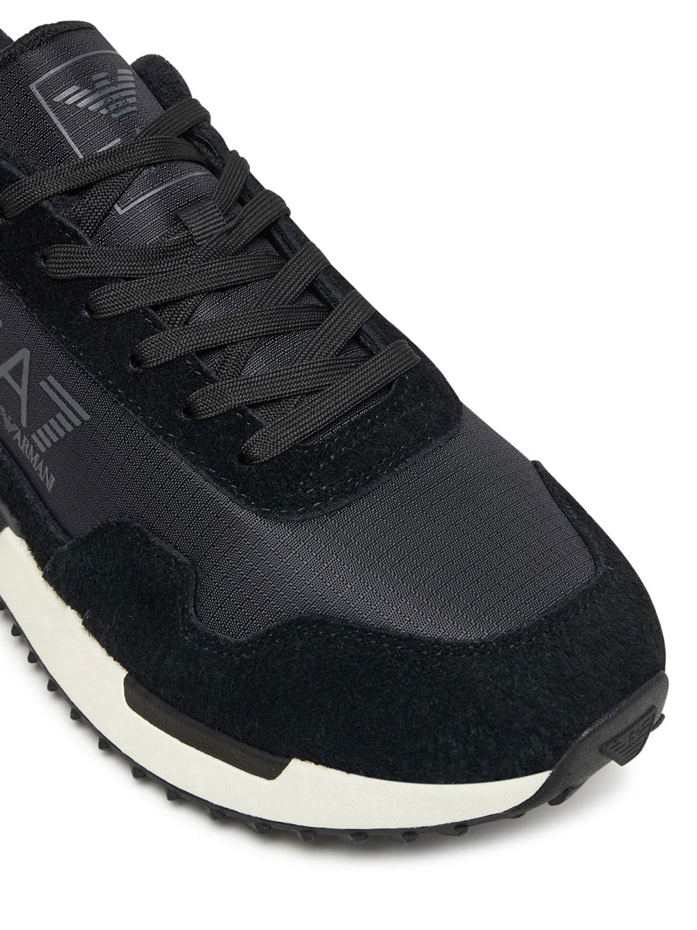 Le sneakers Ea7 Unisex in nero sono perfette per un look sportivo e alla moda. Realizzate in camoscio e materiale tessile, sono confortevoli e versatili per l'uso quotidiano. La chiusura a lacci e la punta arrotondata le rendono facili da indossare. Ideali per un pubblico unisex alla ricerca di stile e comfort.