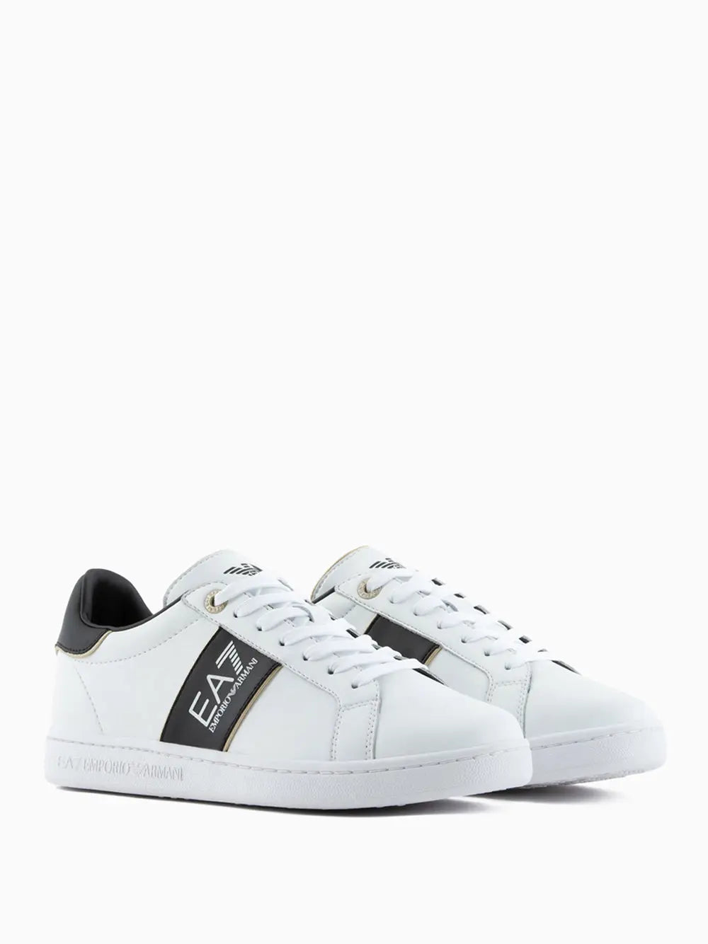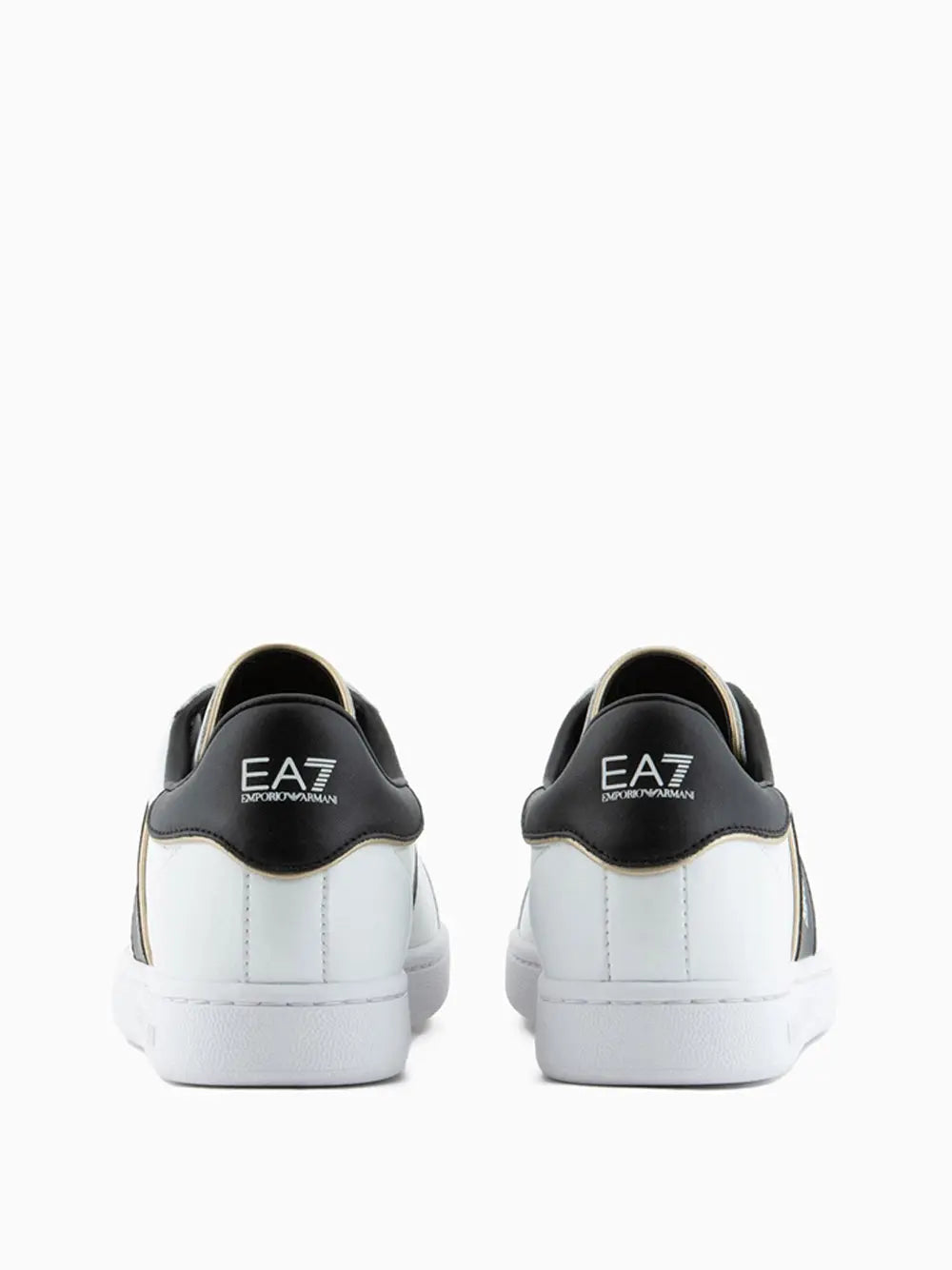Sneakers unisex Ea7, modello X8X102XK346, dal taglio semplice e dall'eleganza casual caratterizzate da una tomaia traforata in pelle. Queste scarpe, con il loro design lineare e il logo a contrasto, combinano versatilità e leggerezza, diventando ideali per chi desidera comfort e stile durante il tempo libero.