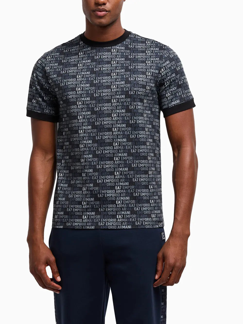 La T-shirt Uomo 7M000208AF12874 - Nero di Ea7 è un capo essenziale che unisce il comfort del cotone di alta qualità a un design moderno e distintivo. Caratterizzata da un motivo monogram all-over, questa t-shirt a maniche corte e girocollo è parte della collezione Logo Series, offrendo uno stile versatile per ogni occasione di svago.