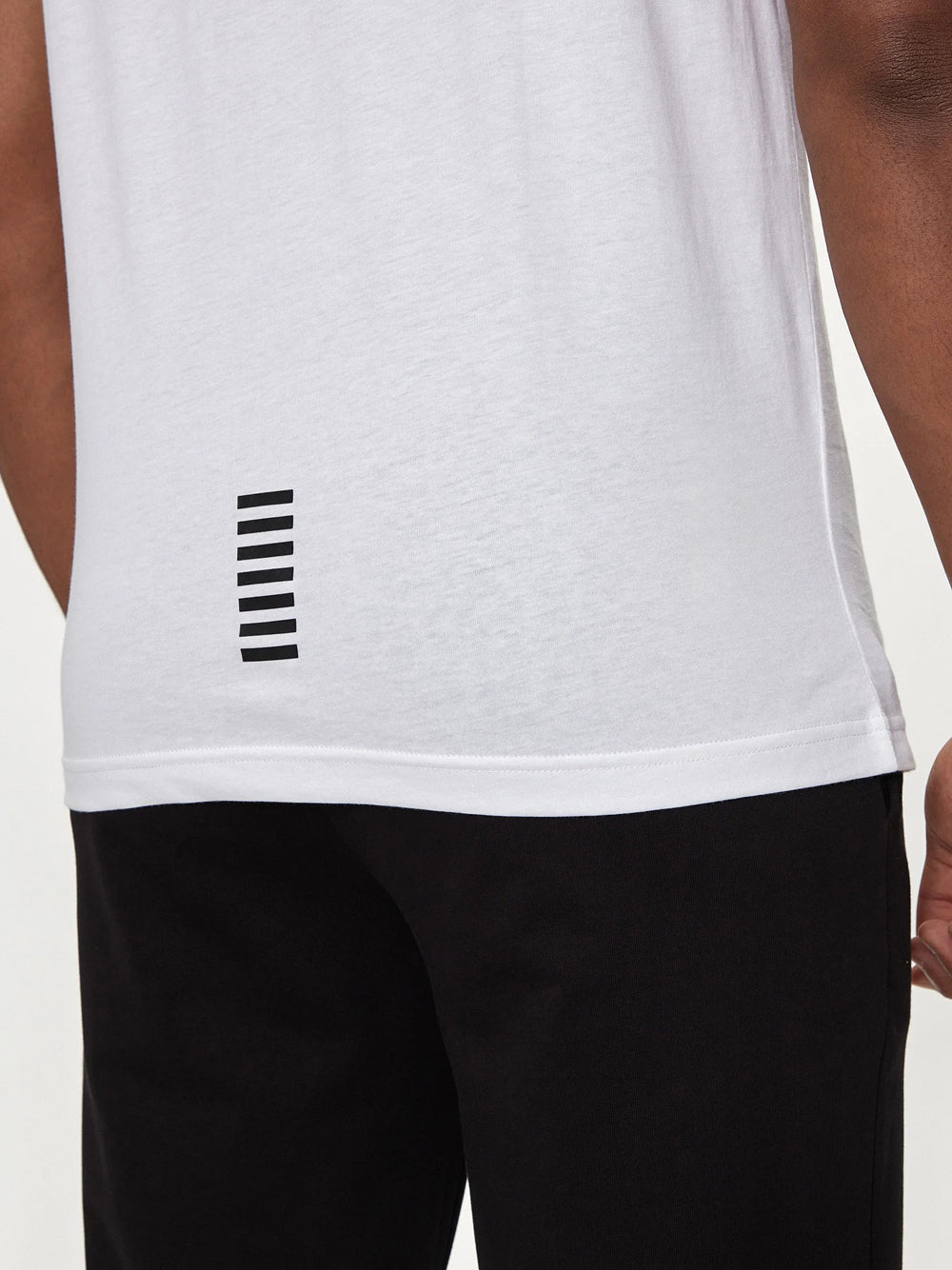 La T-shirt EA7 in colore bianco combina un design minimalista con il comfort del cotone Pima, ideale per ogni occasione, sia dentro che fuori dalla palestra. Arricchita da un piccolo logo EA7 sul petto, questa maglietta offre una vestibilità regular e una sensazione di morbidezza sulla pelle, perfetta per l'uomo contemporaneo.