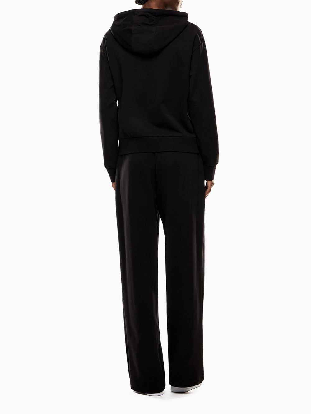 La tuta sportiva donna di Ea7 offre comfort e stile in un unico capo. Realizzata in cotone stretch, è caratterizzata da una felpa con zip e cappuccio regolabile e pantaloni ampi con logo EA7 in metallo dorato. Questo set è pensato per chi ama la praticità senza rinunciare all'eleganza distintiva di Ea7.