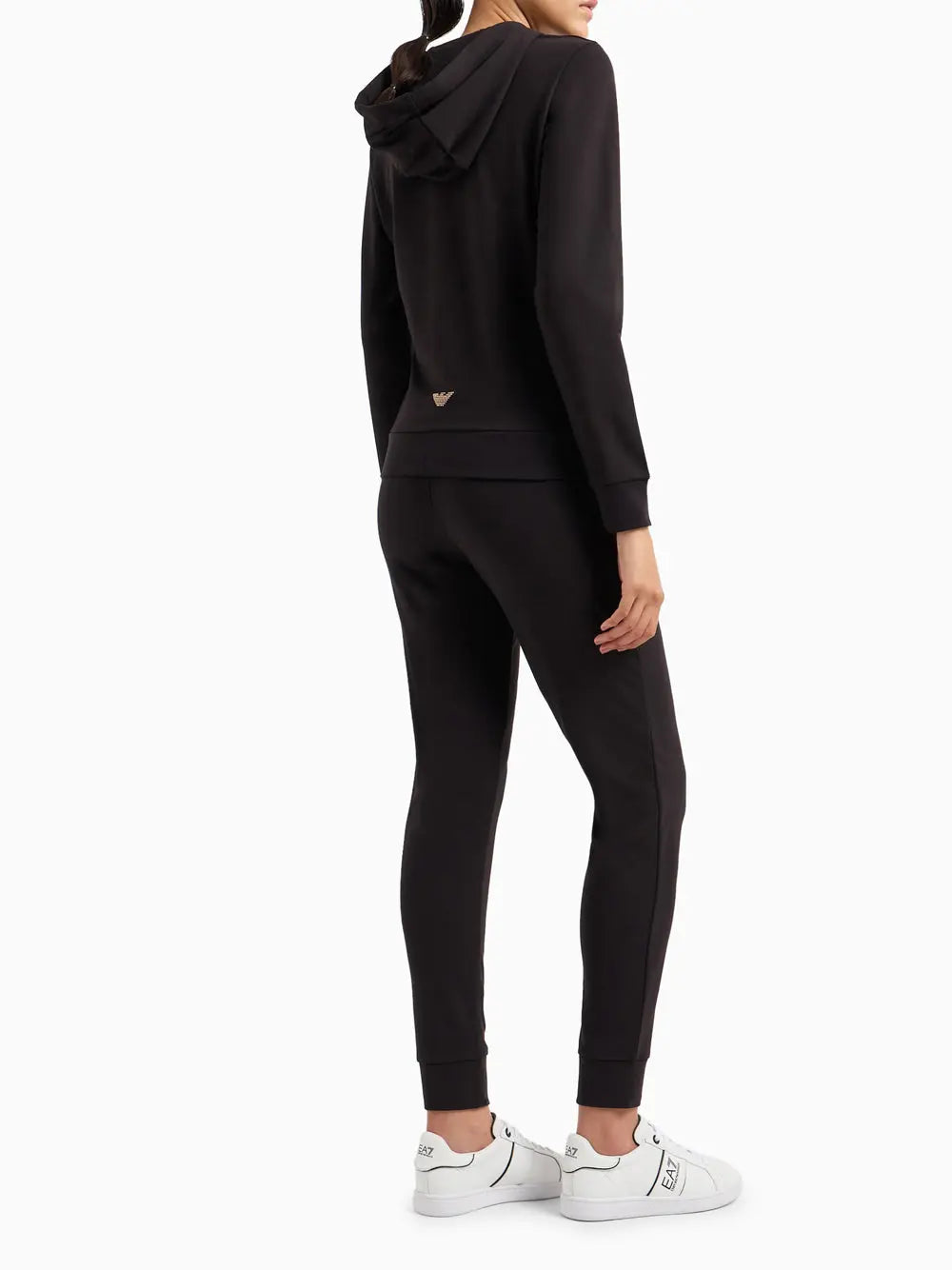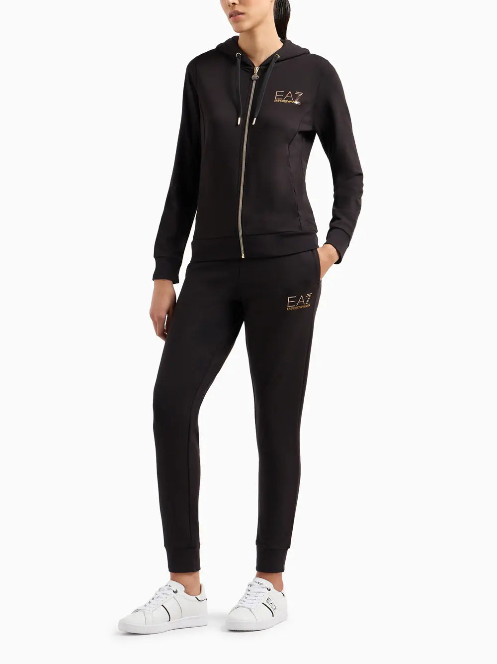 - Logo EA7 in micro borchie oro su felpa e jogger