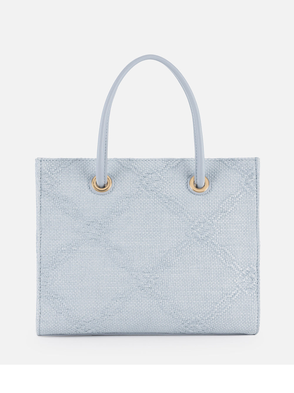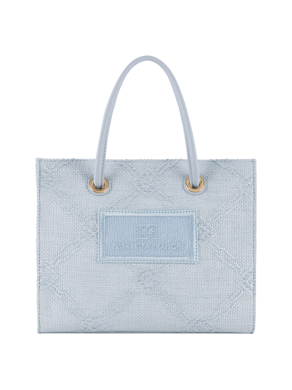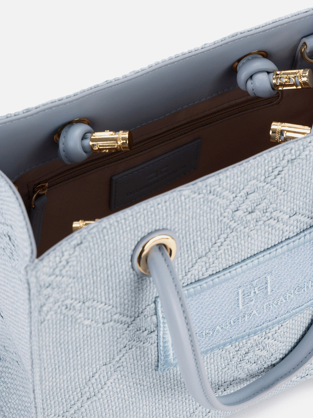 La Borsa a Mano Sky Blue di Elisabetta Franchi è una raffinata creazione femminile, perfetta per chi cerca eleganza e funzionalità in un accessorio esclusivo. Realizzata in rafia jacquard con disegno a losanghe, questa borsa aggiunge un tocco di classe e luce grazie ai dettagli in metallo dorato.