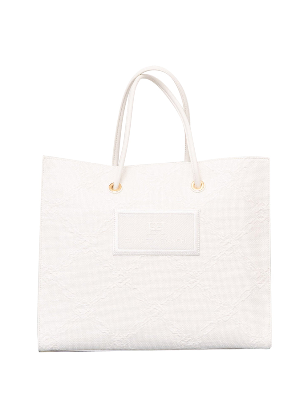 La borsa Shopper Donna BS82A52E2 di Elisabetta Franchi è un elegante accessorio avorio, perfetto per aggiungere un tocco di classe a qualsiasi outfit. Questa borsa tote grande è realizzata in rafia jacquard con un raffinato disegno a losanghe, impreziosita da dettagli in metallo dorato che le conferiscono una nota di luce distintiva.