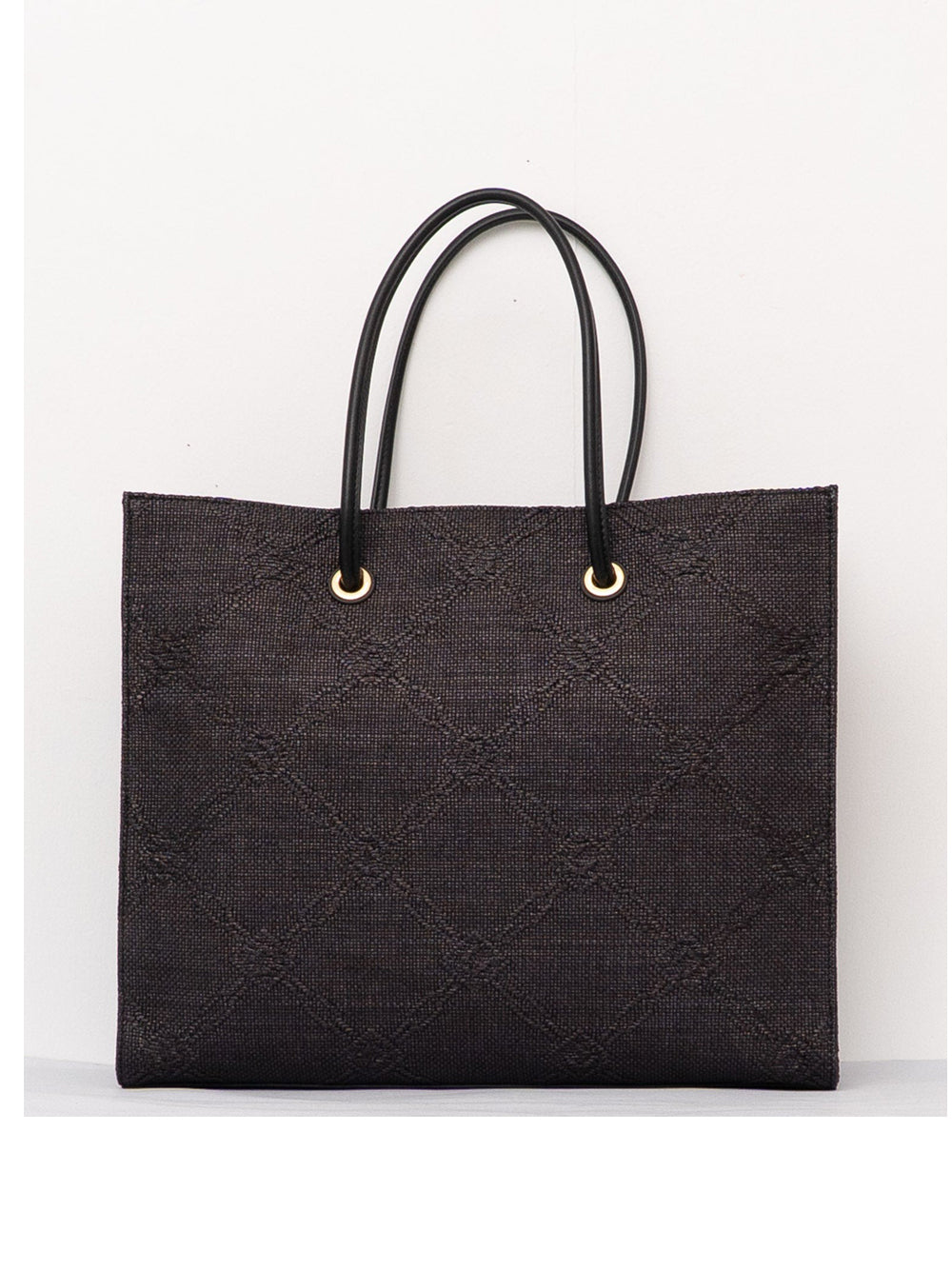 La borsa shopper Elisabetta Franchi è un accessorio unico che combina funzionalità e stile. Realizzata in rafia jacquard con un elegante disegno a losanghe, è impreziosita da dettagli in metallo dorato e una patch con logo ricamato. Perfetta per la donna moderna che desidera unire praticità e raffinatezza nel proprio guardaroba.