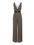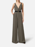 - Tuta in georgette con scollo a portafogli e pantaloni a palazzo