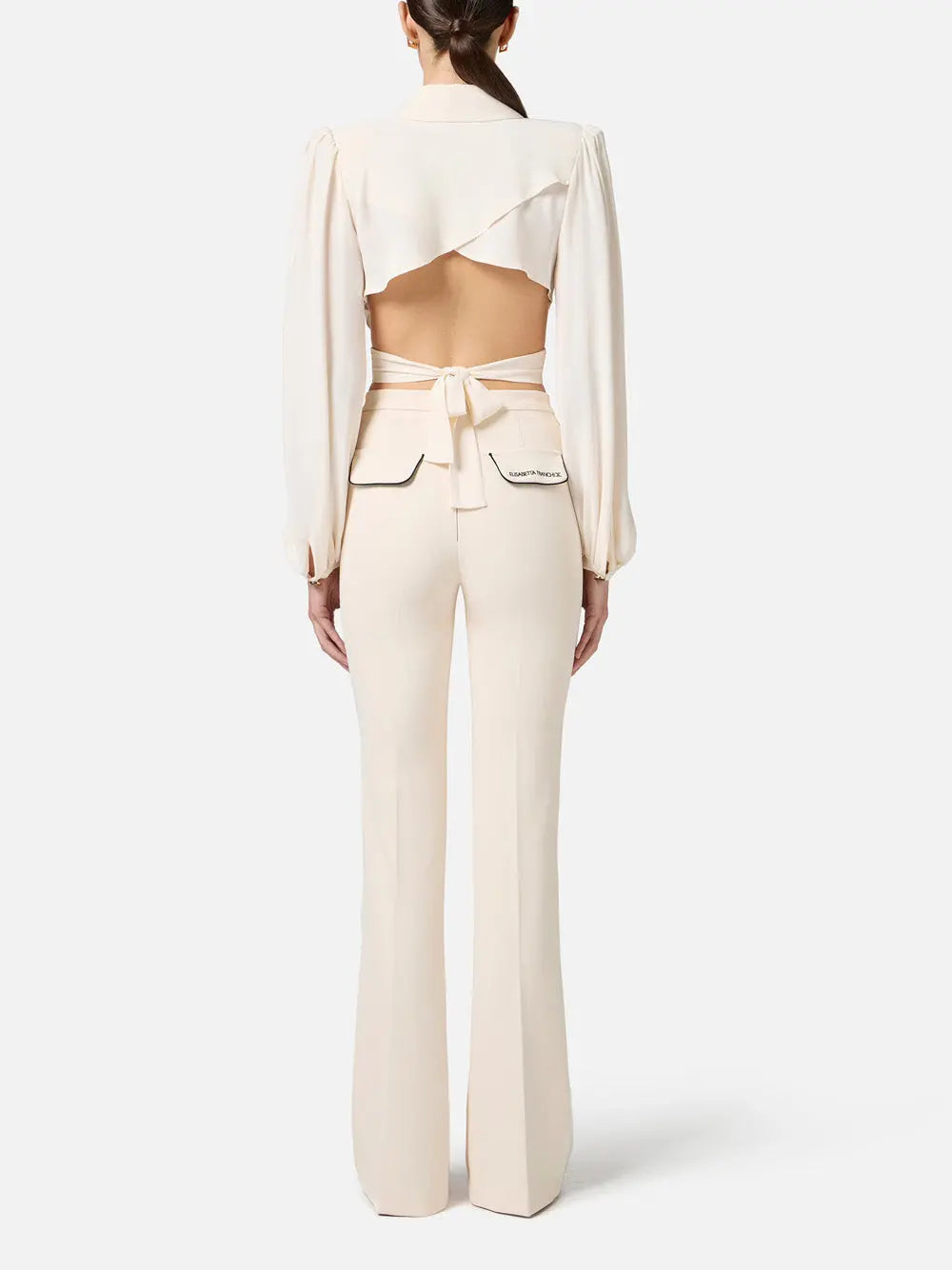 - Pantaloni in crêpe stretch leggero con fascione in vita
