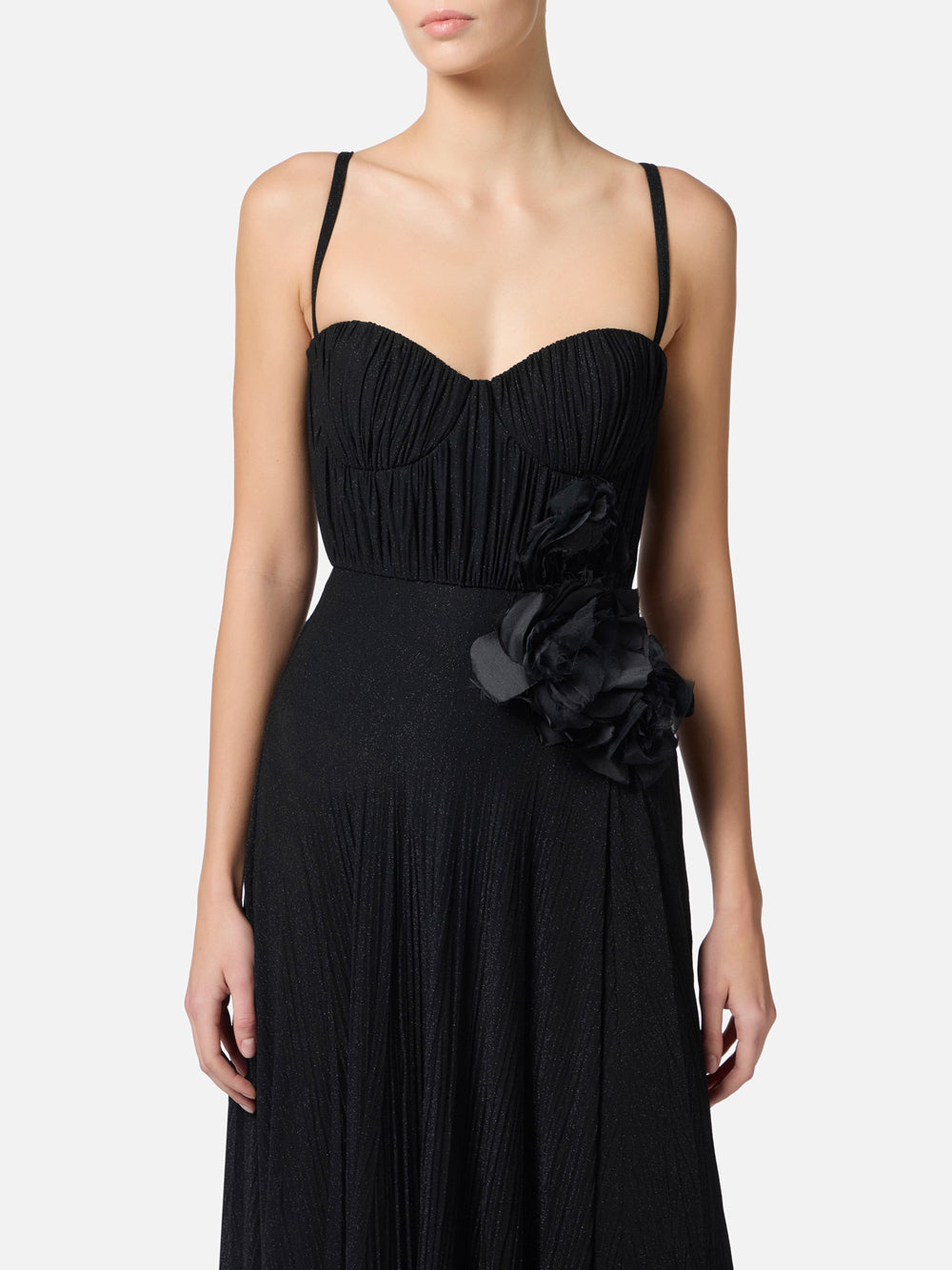 Il Vestito Longuette di Elisabetta Franchi, codice ABR2252E2, è un capolavoro di eleganza e stile. Caratterizzato da una silhouette slim e realizzato in un raffinatissimo nero, questo abito è completato da dettagli floreali coordinati e spalline regolabili per una perfetta vestibilità. Una zip invisibile sul fianco consente una chiusura pulita, rendendolo ideale per ogni occasione speciale.
