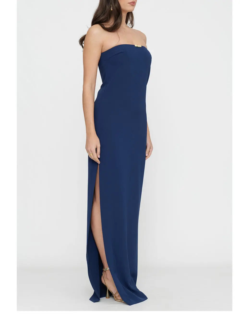 Il vestito longuette di Elisabetta Franchi è un capo dallo stile inconfondibile e raffinato, perfetto per la donna che ama esprimere eleganza e stile. Realizzato in doppio crêpe, presenta spalle scoperte e un'applicazione in strass sul top, offrendo un tocco di glamour a ogni occasione.