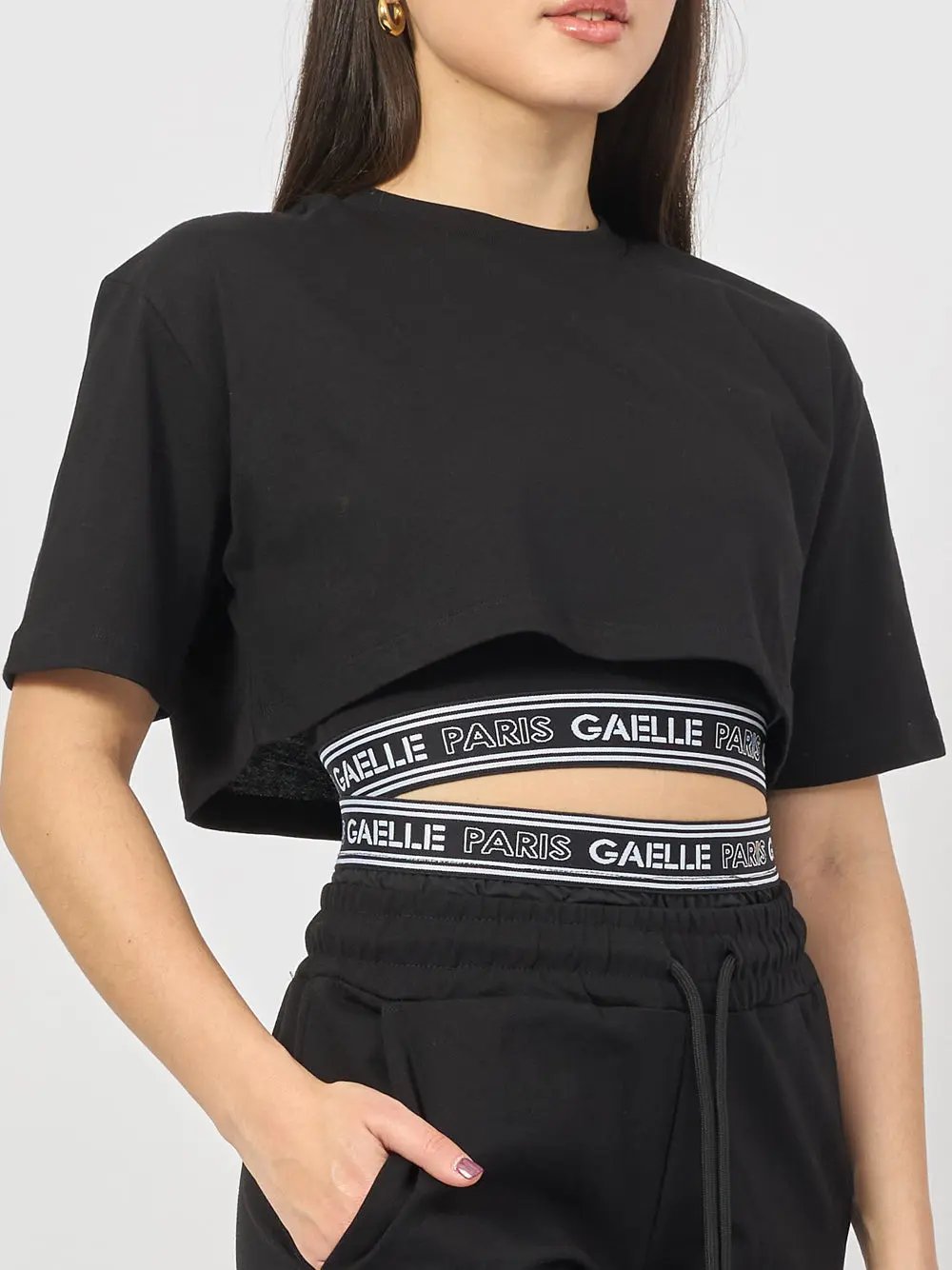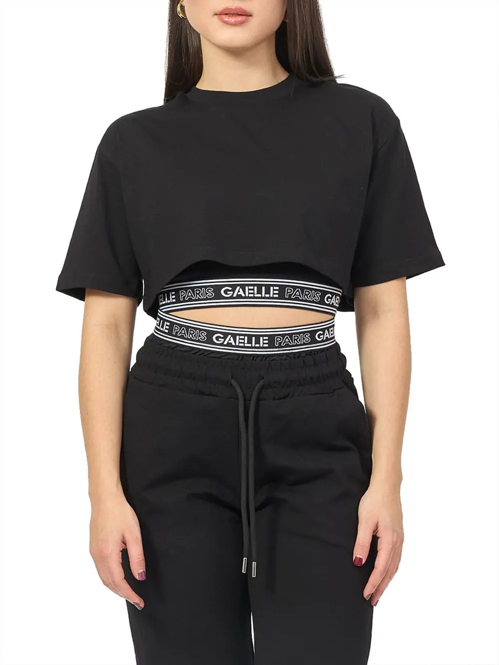 La T-shirt Cropped Donna GAABW03852 di Gaelle, in un elegante nero, si distingue per il suo fit corto e l'elastico brandizzato. Ideale per chi ama un abbigliamento alla moda, è perfetta per le donne che vogliono un look casual ma ricercato. Realizzata con un morbido mix di cotone ed elastan, garantisce comfort e un'ottima vestibilità.