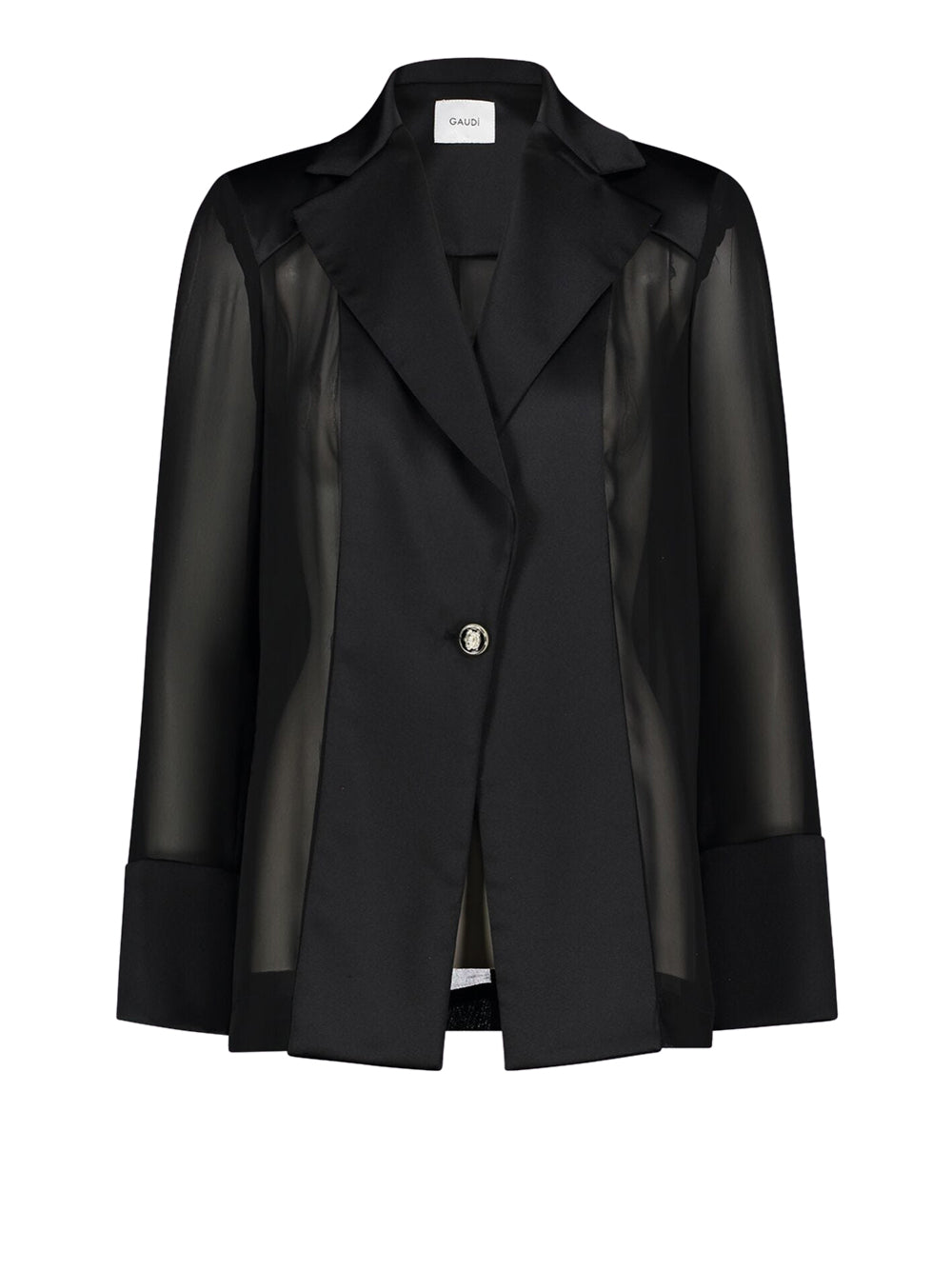 La giacca Gaudi donna, 511FD35017 Black - Nero, è un capolavoro sartoriale che mescola l'eleganza del blazer monopetto in georgette e raso con un tocco moderno. Questa giacca nera è l'essenziale perfetto per aggiungere fascino e raffinatezza al tuo guardaroba. Ideale per eventi speciali o per dare un tocco di classe al look quotidiano.
