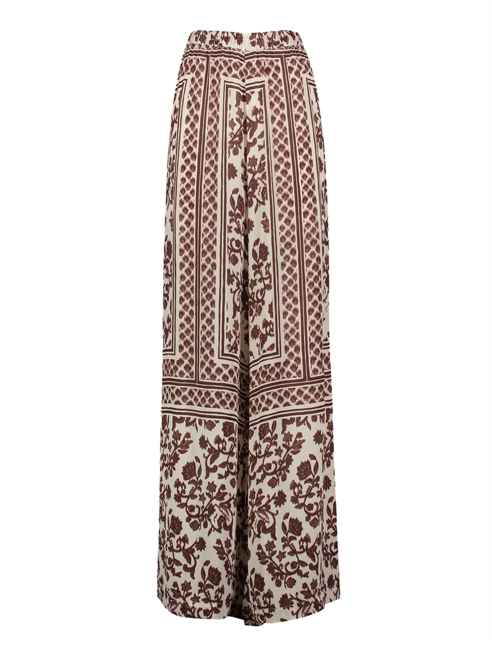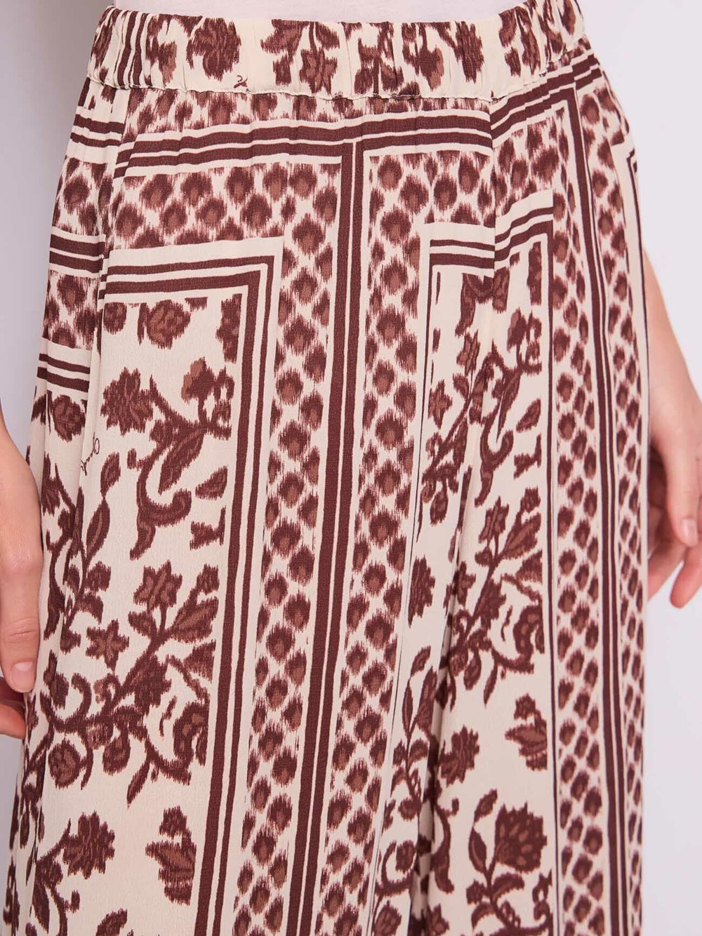- Scegli i pantaloni in crêpe con stampa floreale e inserto elastico in vita