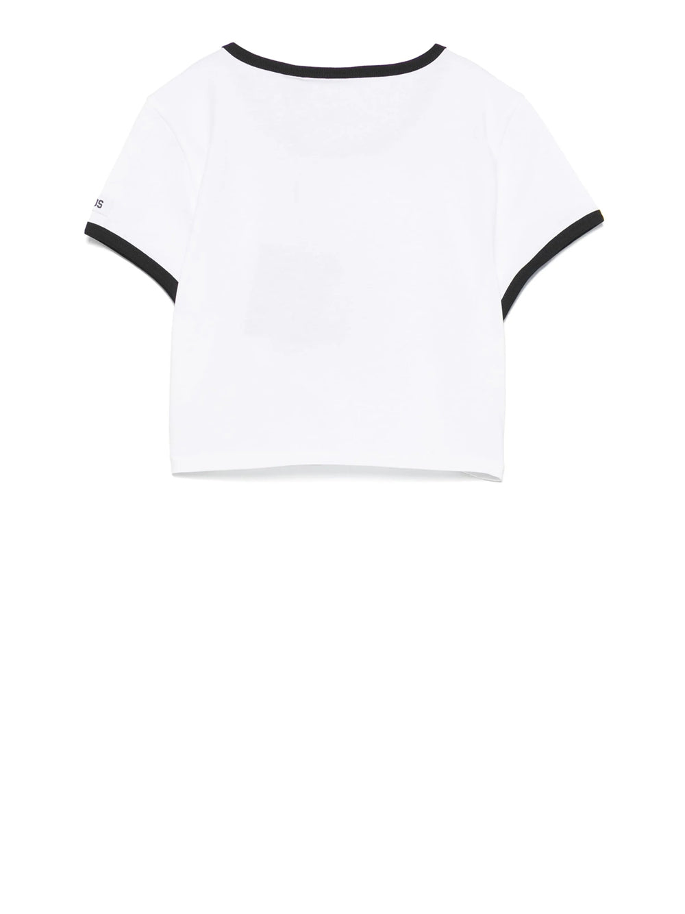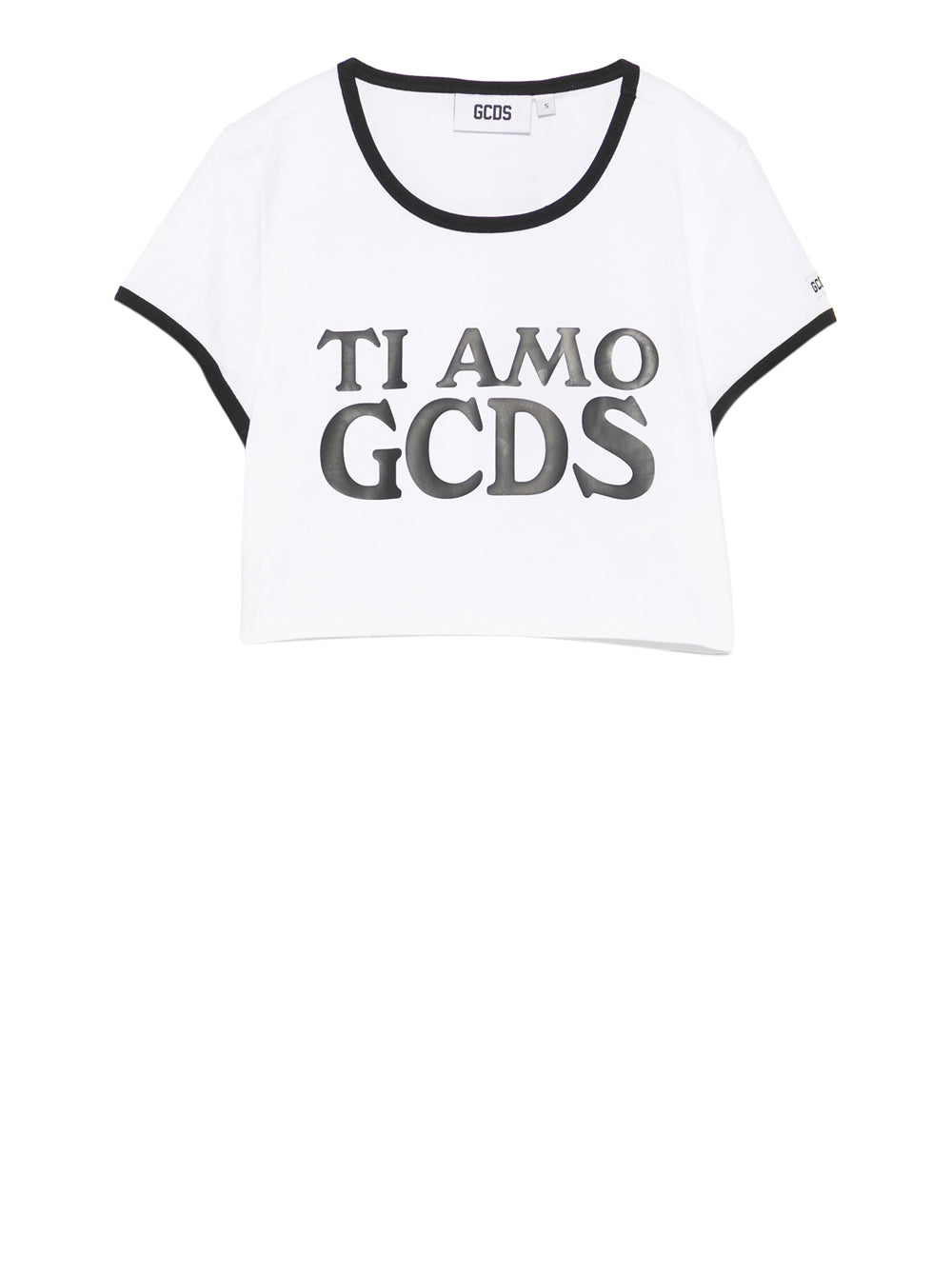 La T-shirt Donna di Gcds, modello A2OW2308JA3, è l'essenza del casual-chic con un tocco distintivo. Realizzata in morbido jersey di cotone, presenta una stampa "Ti Amo GCDS" a contrasto che aggiunge un tocco di unicità. Il taglio cropped e i profili a contrasto la rendono perfetta per un look giovane e dinamico.