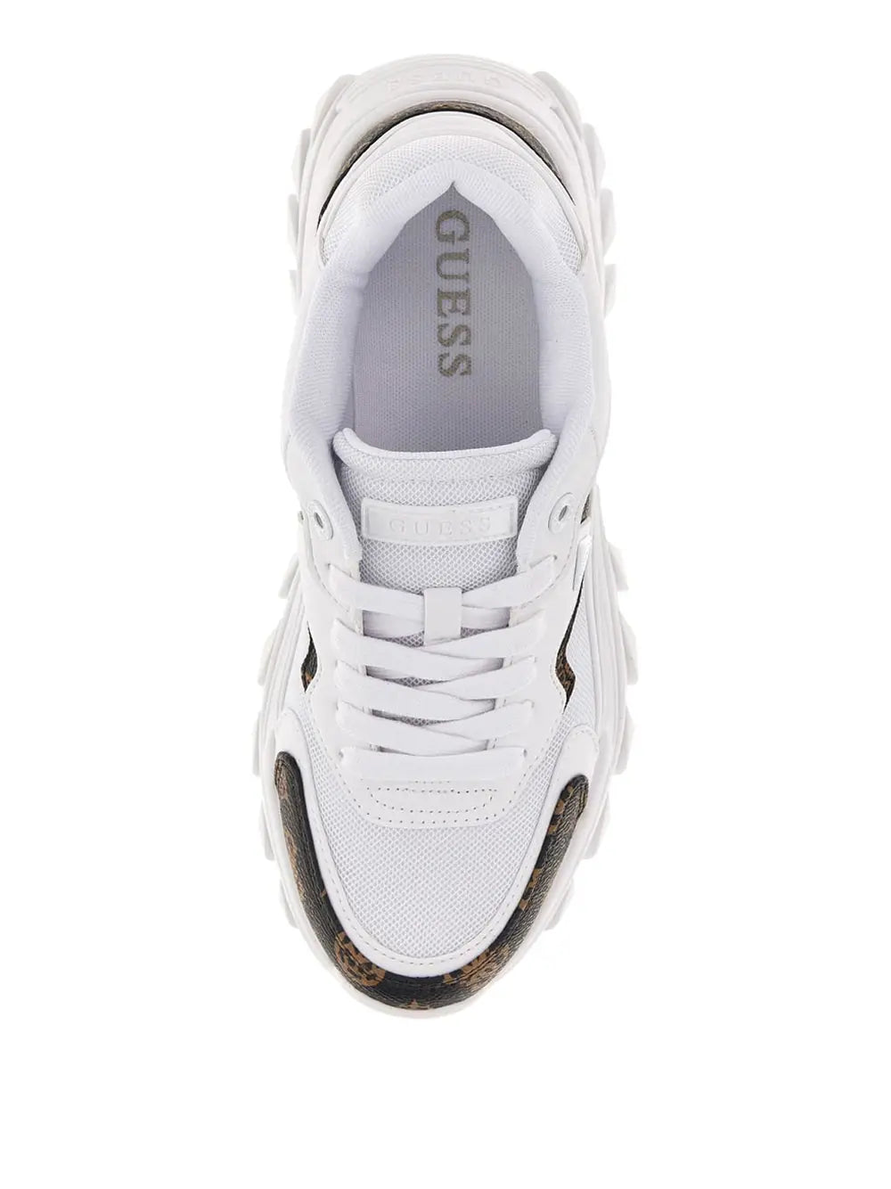 Le sneakers Guess Nowah per donna uniscono stile e comfort con un design accattivante in bianco e marrone. Perfette per completare qualsiasi look casual, queste sneakers versatili diventano un indiscusso must-have nel guardaroba di chi desidera unire eleganza moderna e praticità quotidiana.
