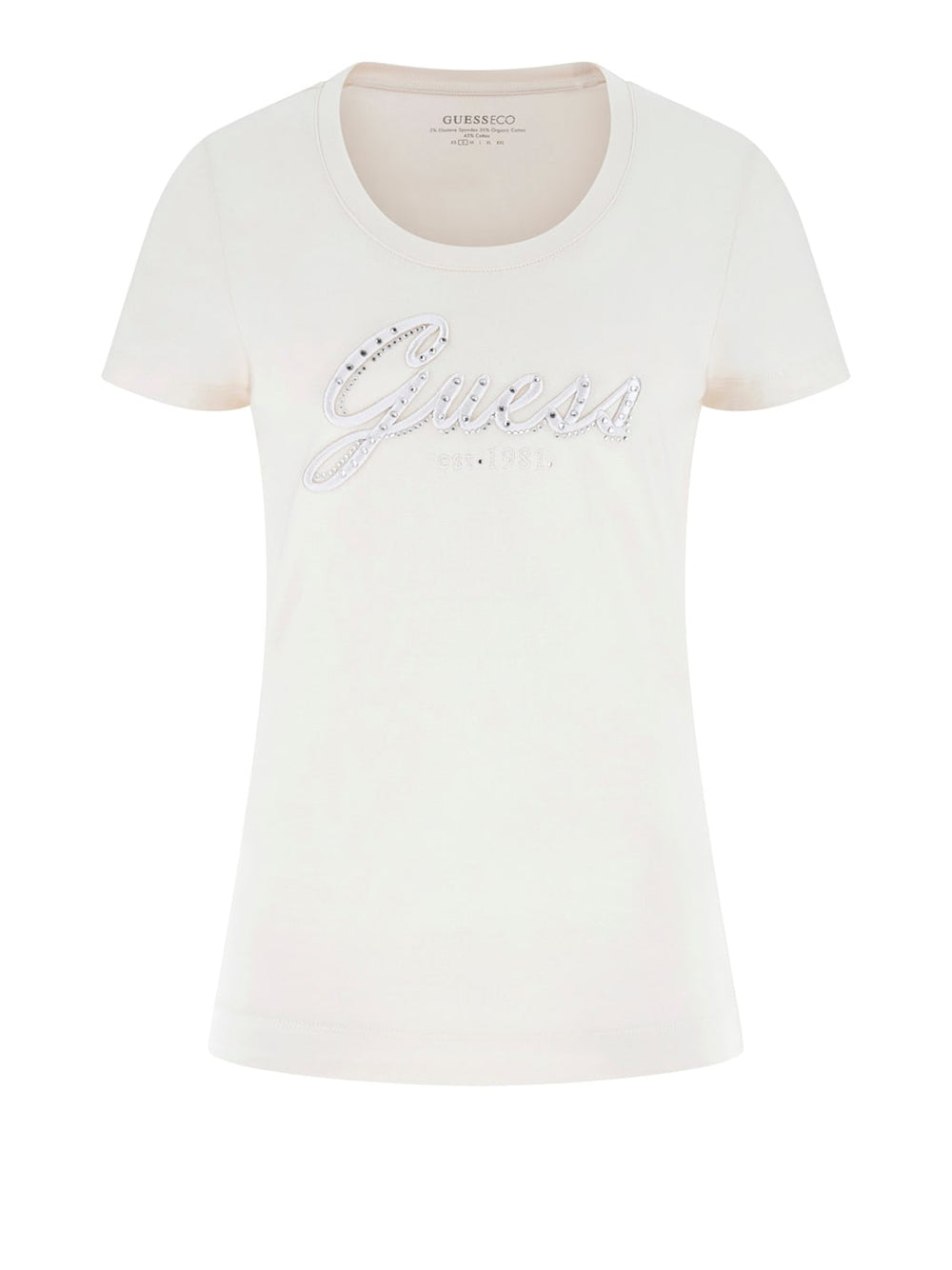 T-shirt Embro Script Logo Donna W5YI46J1314 Stone - Avorio