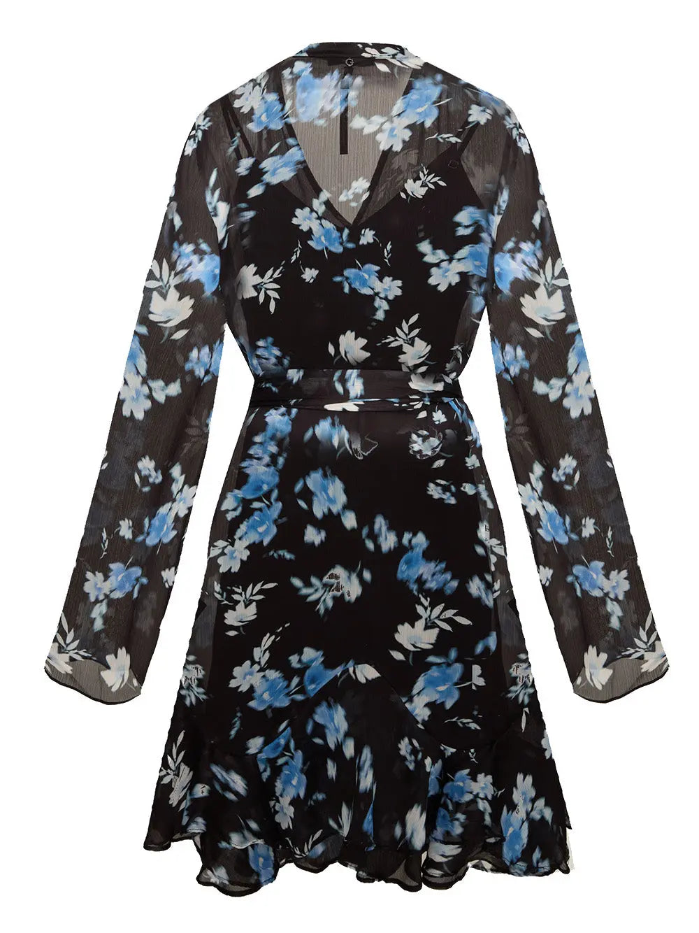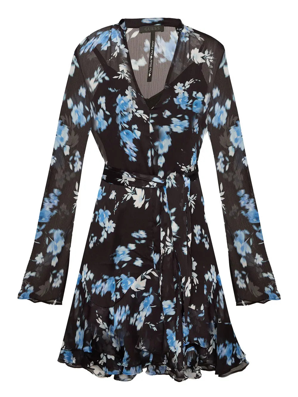 Il Vestito Mini Sibilla di Guess è la scelta perfetta per un look elegante e femminile. Realizzato in chiffon leggero, si distingue per la sua stampa floreale all over e il design alla moda. Con scollo a V e cintura coordinata, questo vestito nero è perfetto per varie occasioni, offrendo uno stile raffinato e di tendenza.