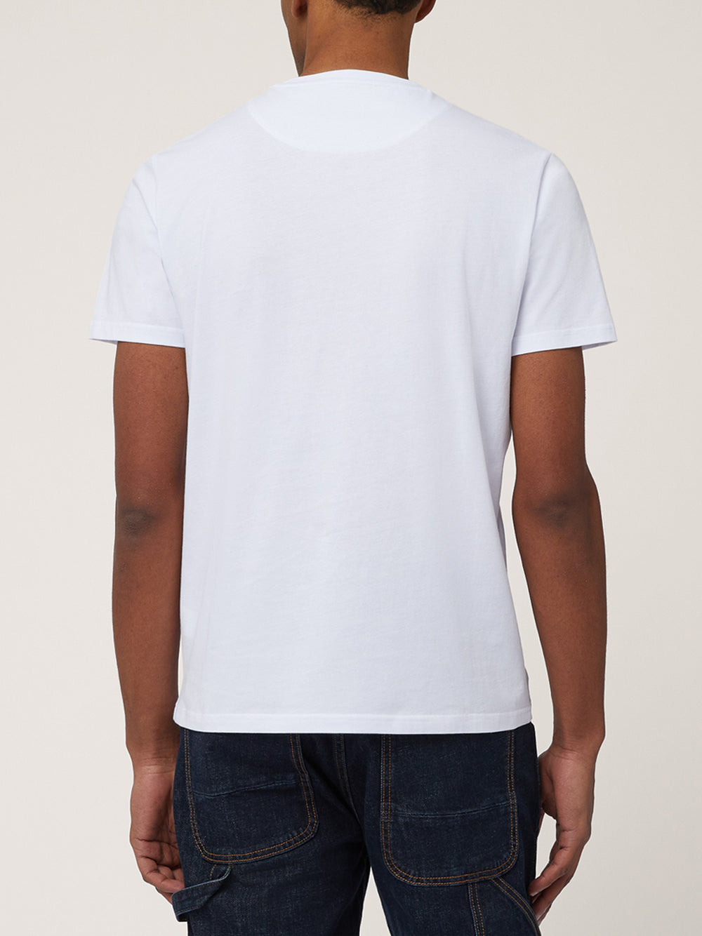 La T-shirt uomo IRN248021824 di Harmont & Blaine è un capo essenziale e versatile per il guardaroba maschile. Realizzata al 100% in cotone, vanta un design pulito con una stampa centrale dell'iconico bassotto Blaine accompagnato dal lettering del brand. Perfetta per aggiungere un tocco di personalità a qualsiasi look casual grazie alla sua comodità e stile intramontabile.