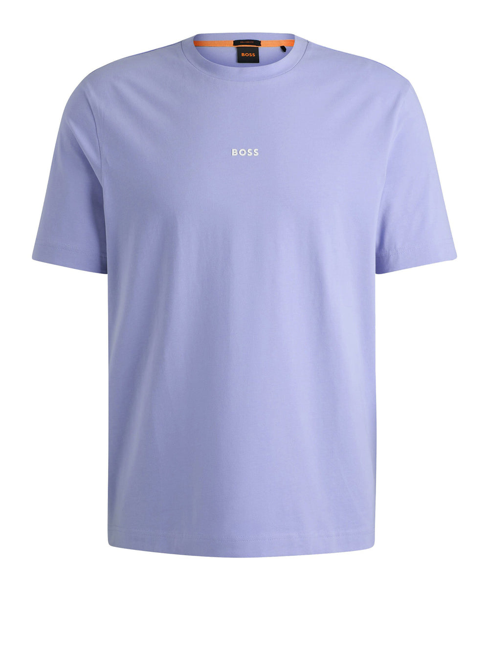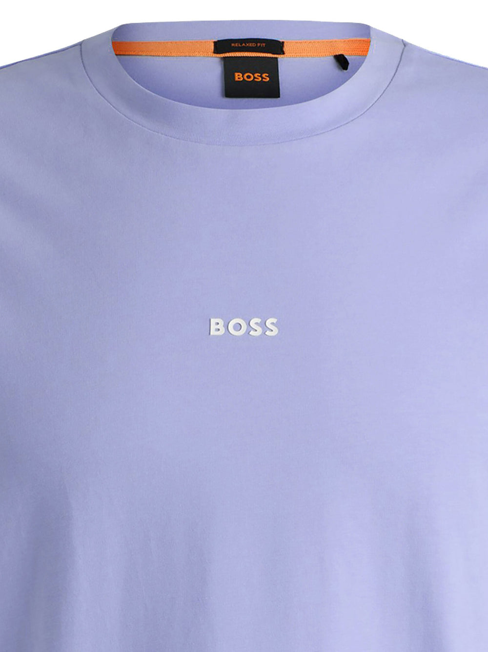 La Hugo Boss T-shirt Uomo "Open Purple - Viola" modello Tchup è un'innovazione nel guardaroba maschile. Questa T-shirt è caratterizzata da un accattivante logo stampato a sette strati al centro del petto, che la rende un capo di tendenza per chi desidera esprimere il proprio stile con classe. Realizzata in morbido misto cotone elasticizzato, offre un comfort impeccabile.