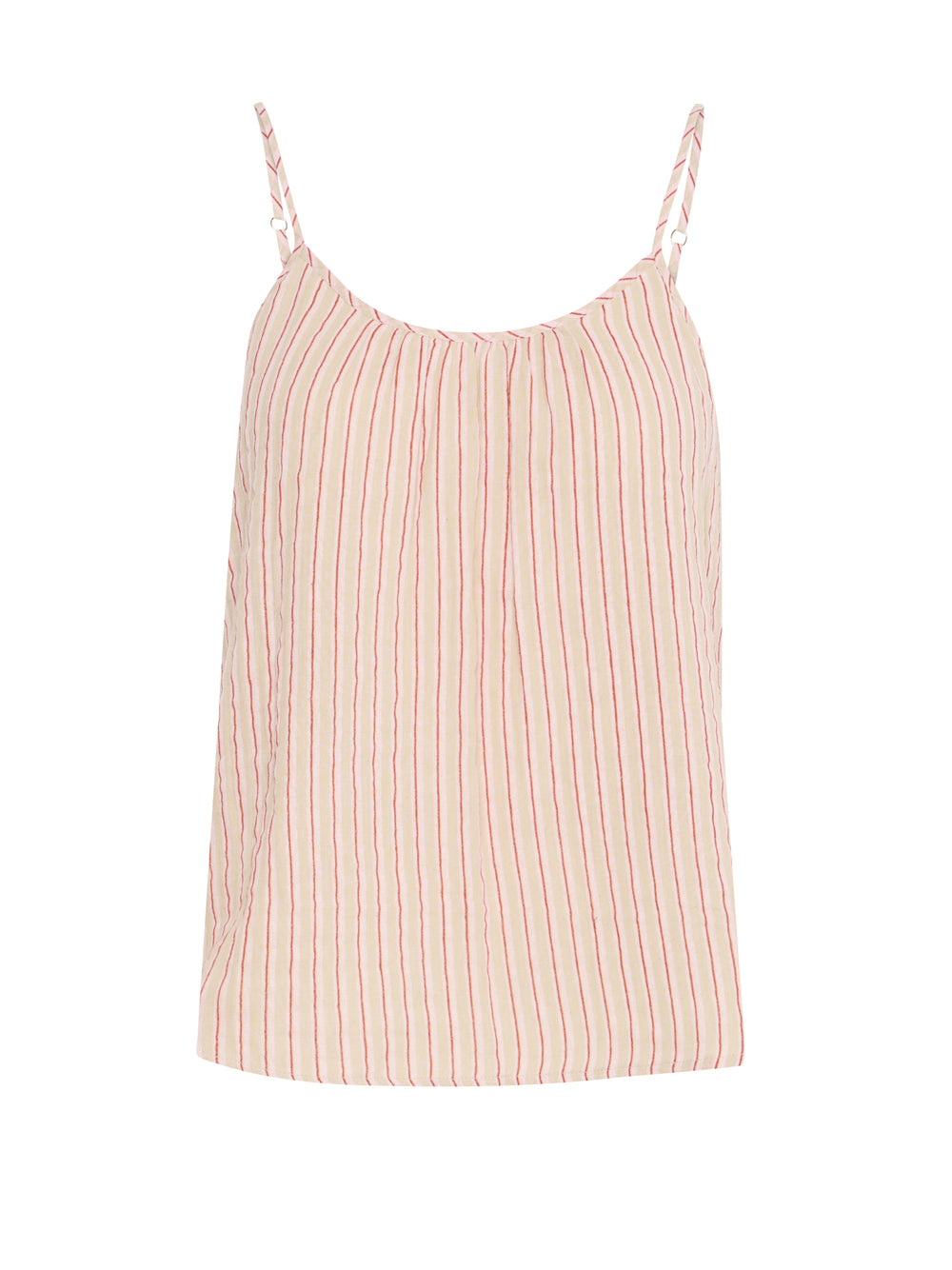 La blusa Iafoxa Donna Light Lilac Stripe di Ichi è la perfetta combinazione di eleganza e comfort. Con il suo motivo a righe in tonalità lilla chiaro e avorio, questa blusa smanicata si abbina facilmente a qualsiasi guardaroba, offrendo uno stile fresco e puro grazie alla sua composizione in cotone al 100%.