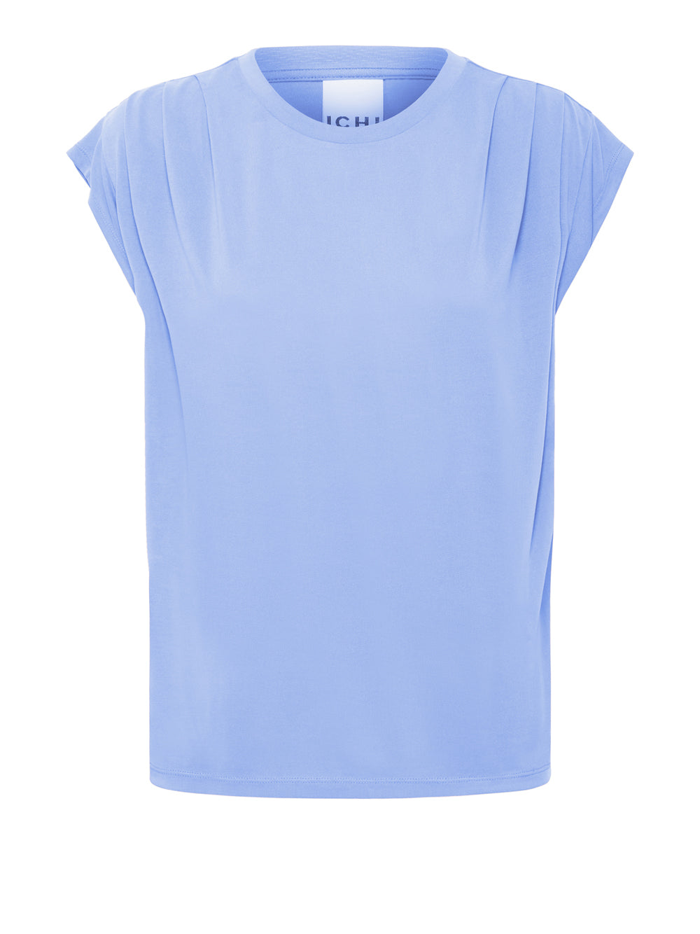 La blusa Ihlisken Donna in Della Robbia Blue - Celeste di Ichi è un capo d'abbigliamento versatile e dal design elegante. Ideale per chi ama uno stile sobrio e raffinato, questa blusa senza maniche presenta un taglio moderno e una vestibilità boxy fit, perfetta sia per un look casual che per occasioni più formali.