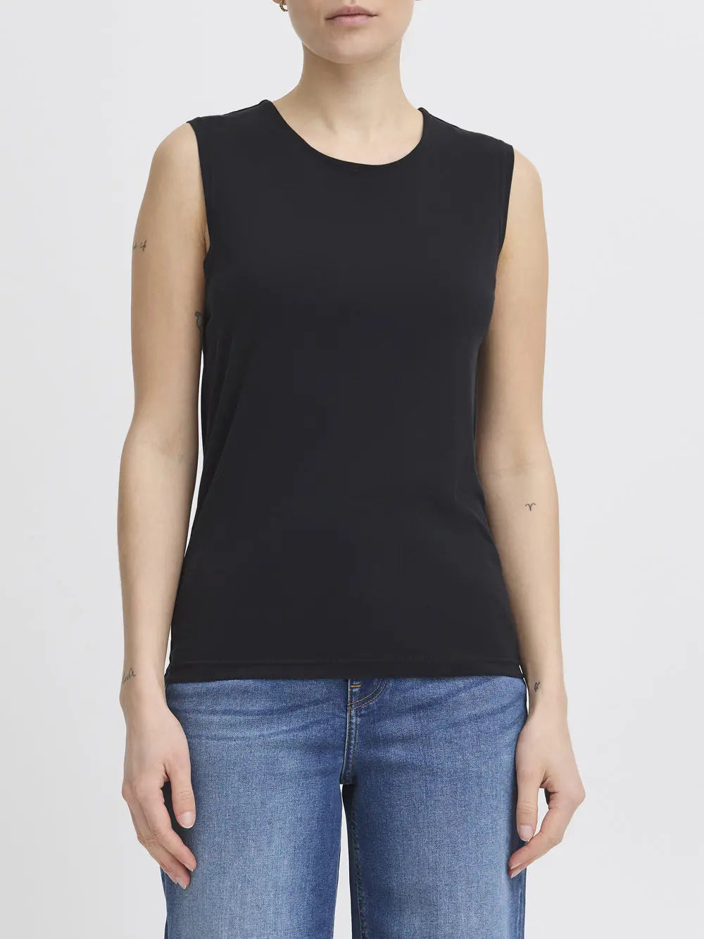 La Blusa Ihopanny Donna del brand Ichi rappresenta la perfetta combinazione tra stile e comfort. Caratterizzata da un design elegante e senza maniche, questa blusa nera si distingue per il suo tessuto morbido e leggero, realizzato in una miscela di Modal e poliestere, che la rende ideale per essere indossata in diverse occasioni, regalando un tocco di eleganza casual.