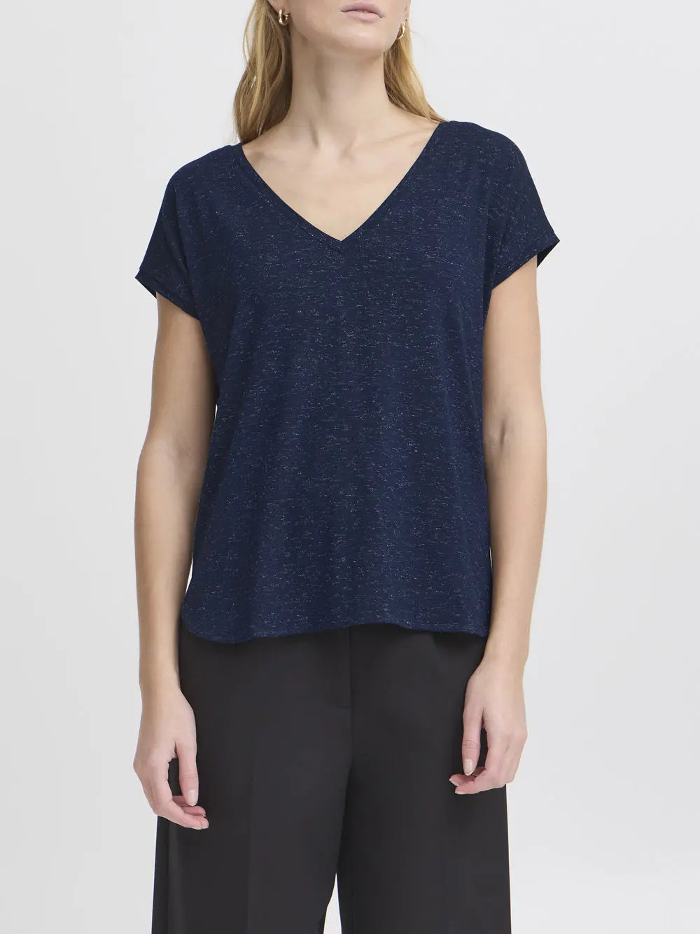 La T-shirt donna "Total Eclipse" di Ichi è un capo versatile e chic che combina comfort e stile. Realizzata con un tessuto morbido e traspirante grazie alla sua composizione in poliestere, viscosa ed elastan, questa t-shirt sfoggia una tonalità blu intensa, perfetta per completare qualsiasi look casual o elegante.