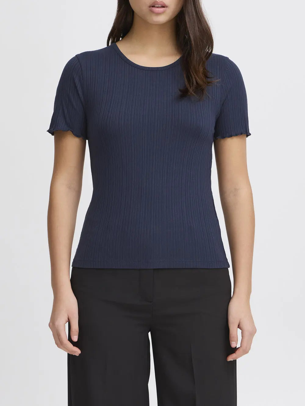 La T-shirt Donna Total Eclipse di Ichi è un capo essenziale per il guardaroba femminile. Realizzata in morbida viscosa Lenzingt Ecoverot, offre una vestibilità modellata, maniche corte e una tonalità blu intensa che aggiunge eleganza a qualsiasi outfit. La perfetta combinazione di stile e comfort per chi desidera un look casual ma curato.