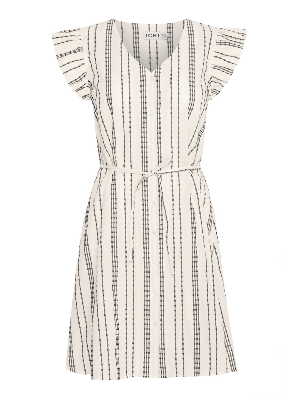 Il Vestito Mini Ihjosine di Ichi è un'elegante combinazione di comfort e stile, perfetta per la donna moderna. Realizzato in morbido cotone 100%, questo abito avorio con motivo a righe jacquard nere è ideale per le occasioni speciali e per il tempo libero, valorizzando la figura grazie alla sua silhouette fluida e dettagli impeccabili.